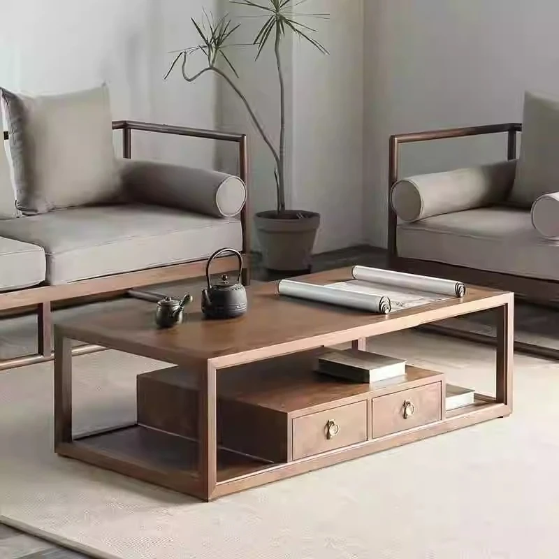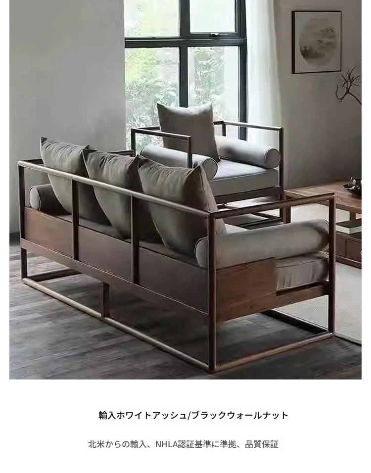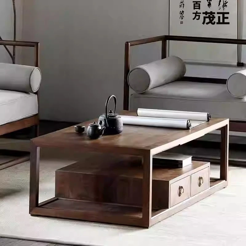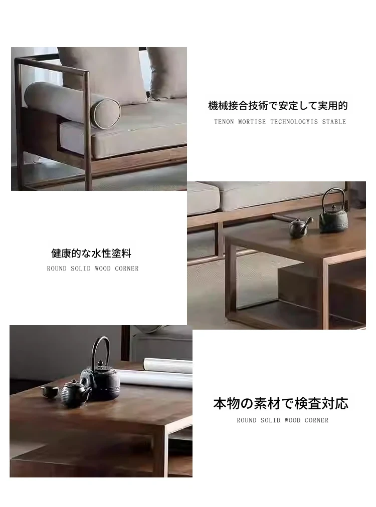 現代的な禅の雰囲気を持つブラックウォールナットとホワイトアッシュのソファ&コーヒーテーブルセット - 新しい中式デザイン、ホテルや民宿、オフィスに最適な接待家具。心地よい空間を演出します!