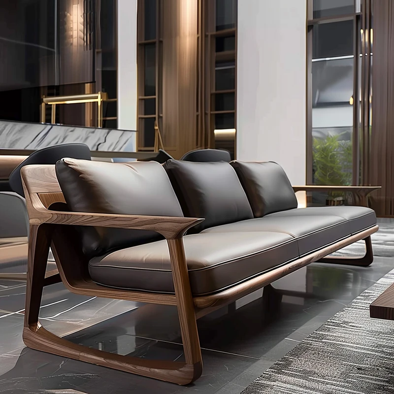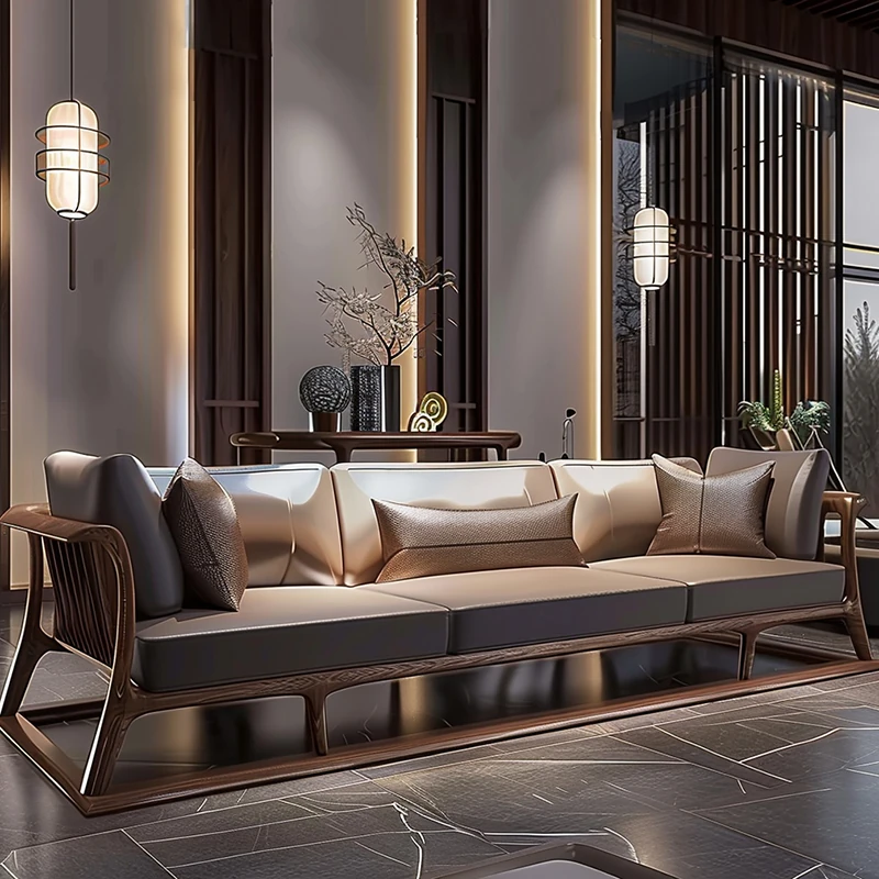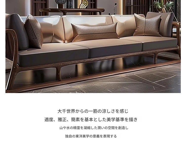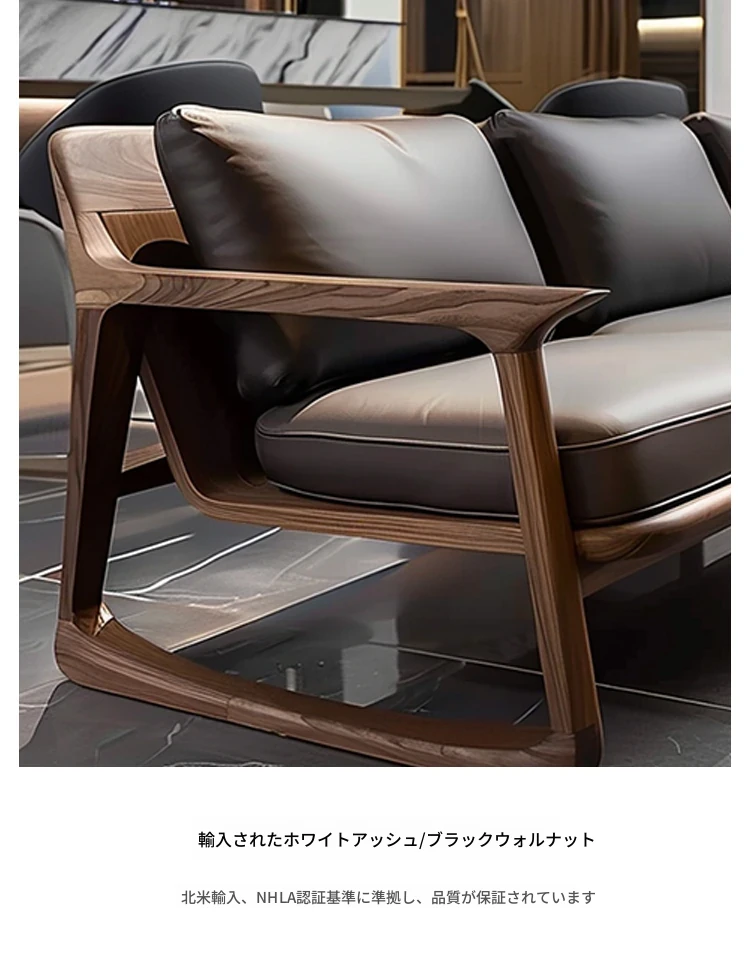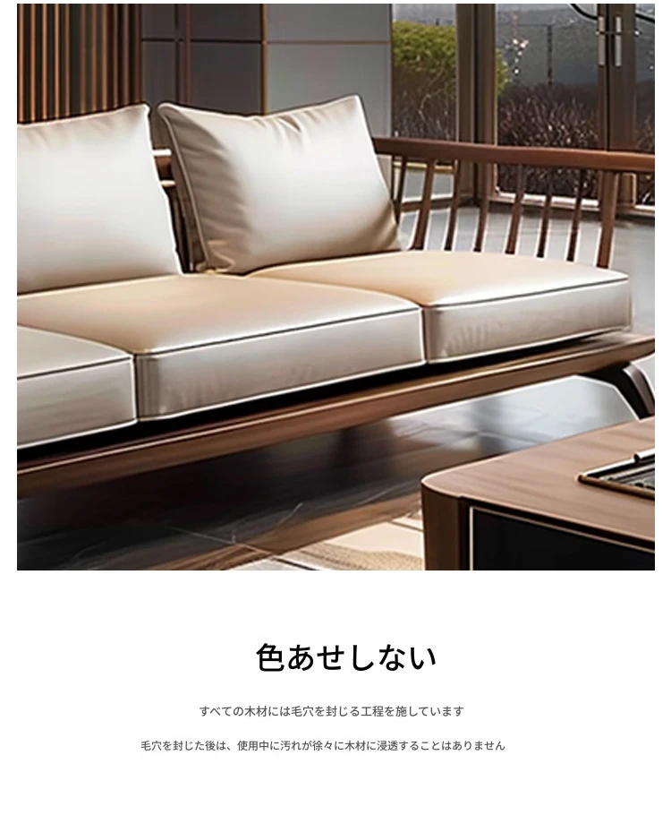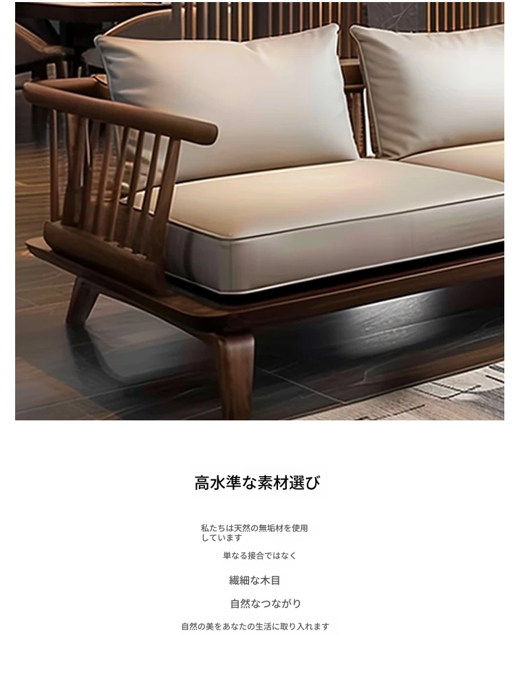 新中式禅スタイルのホワイトアッシュ製ソファ - 現代的なリビングにぴったり!北米産ブラックウォルナット木材を使用した高品質な無垢家具で、心地よいリラックス空間を演出します。