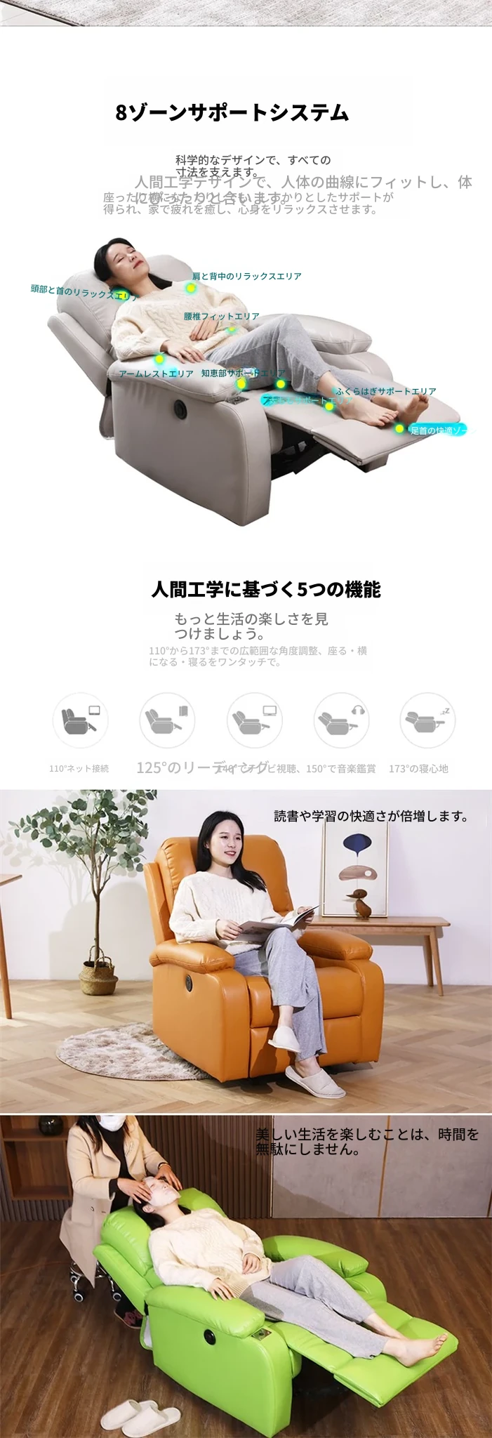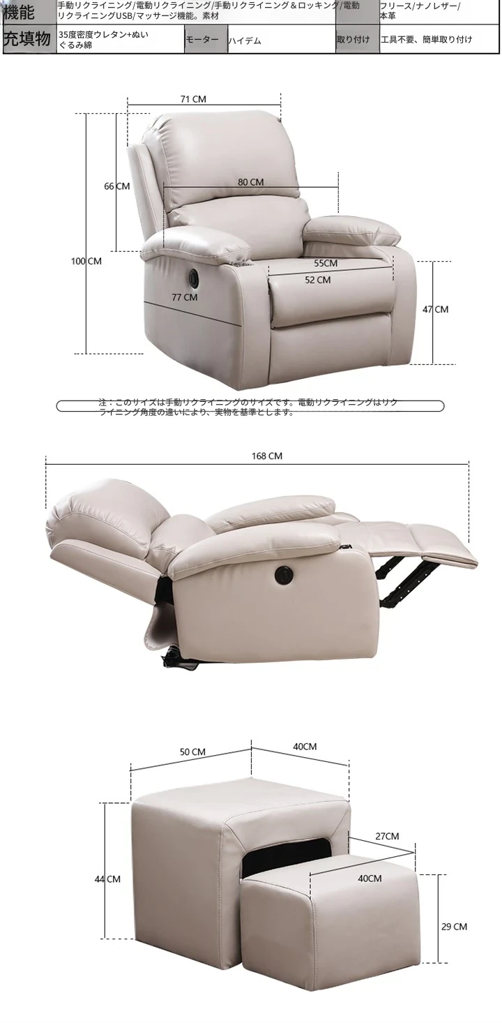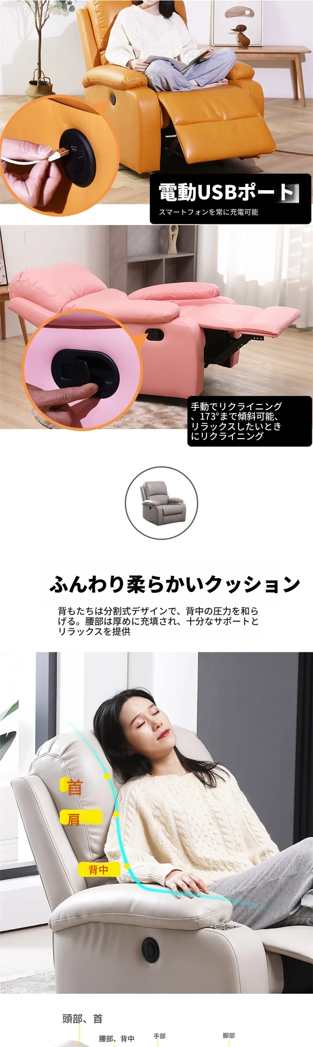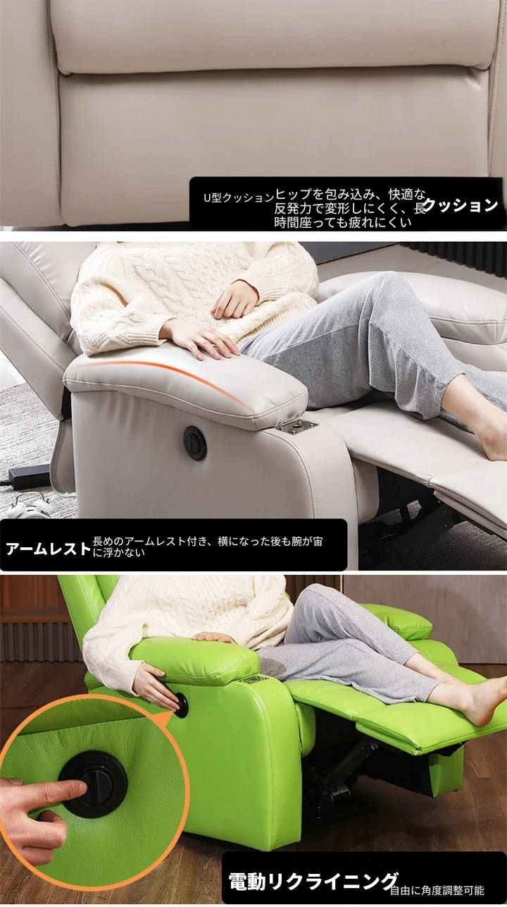 電動リクライニング+USB充電+振動マッサージ機能