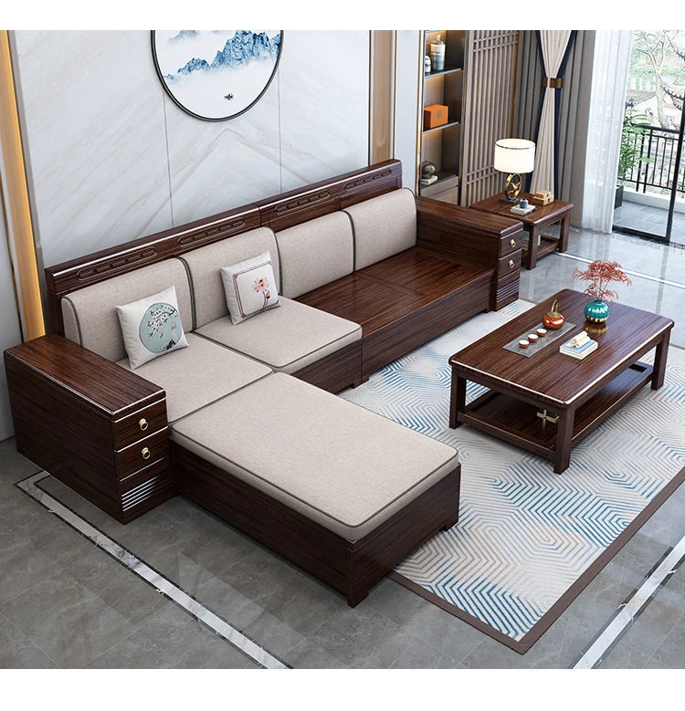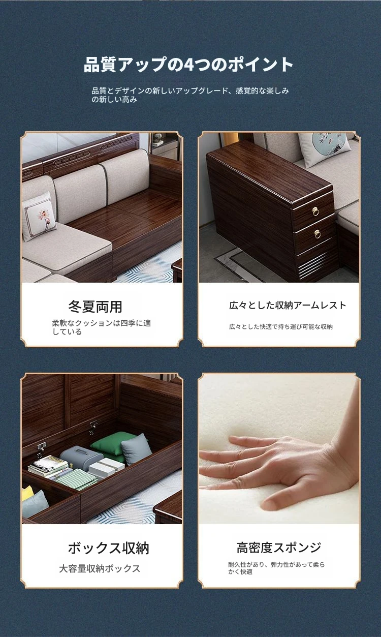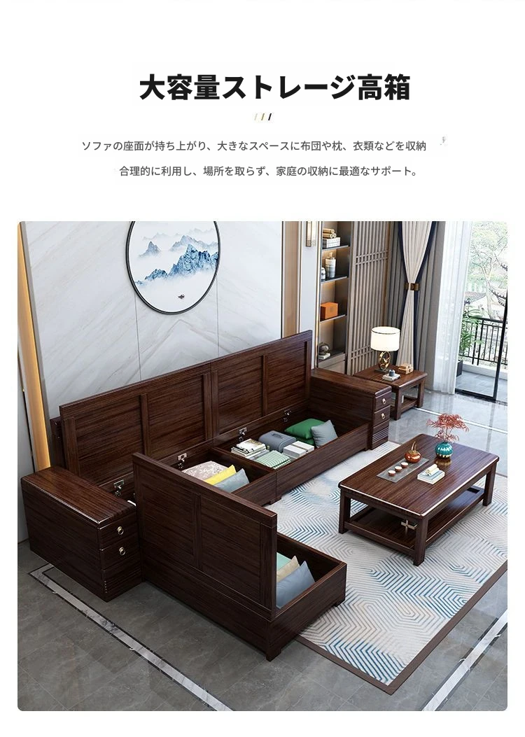 4人用ソファ + 貴妃ソファ + 茶水棚 + コーヒーテーブル + テレビ台
