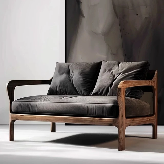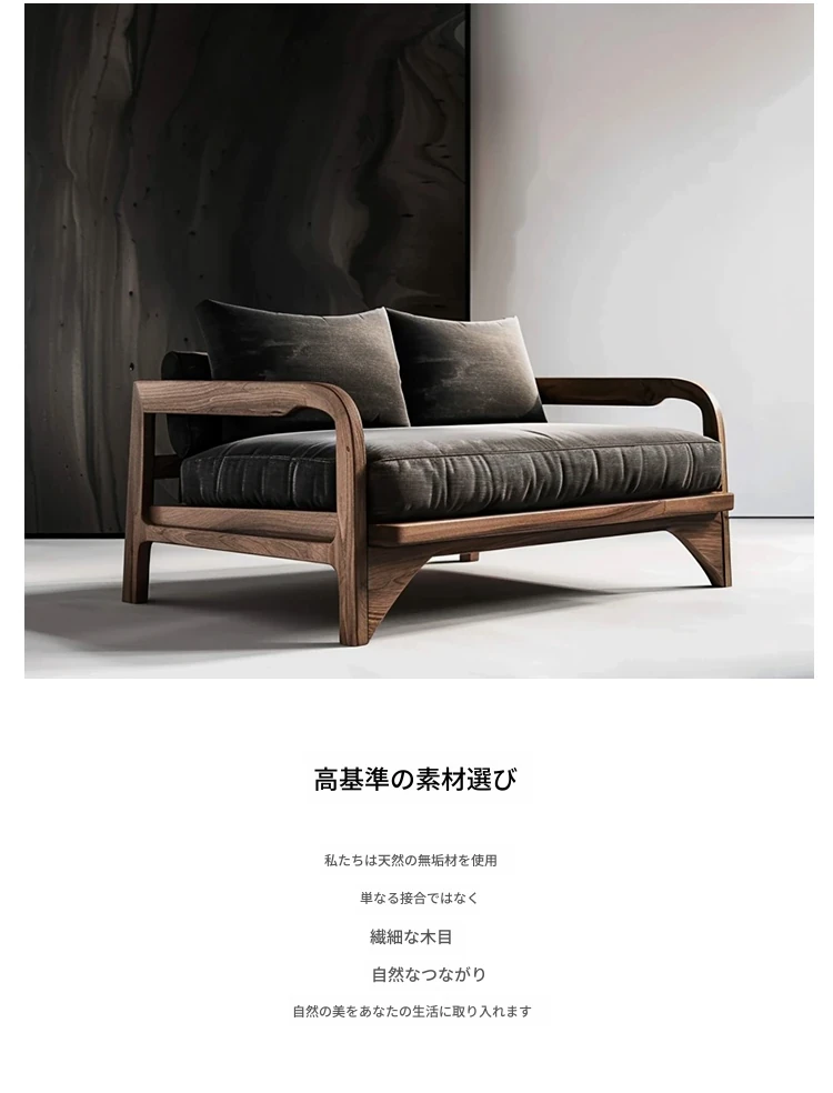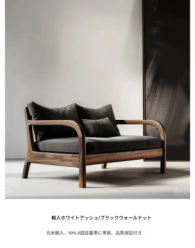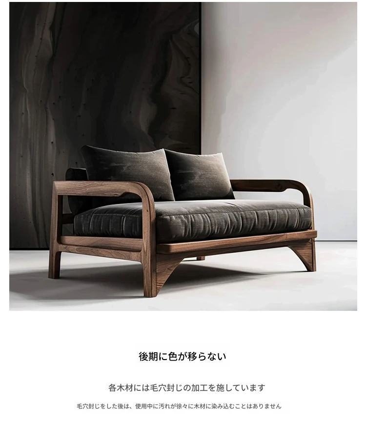 新中式スタイルのホワイトアッシュウッドソファ - オフィス、ホテル、民宿、家庭に最適!北米産ブラックウォールナット直材使用の高品質家具で、洗練された美しさと快適さを提供します。