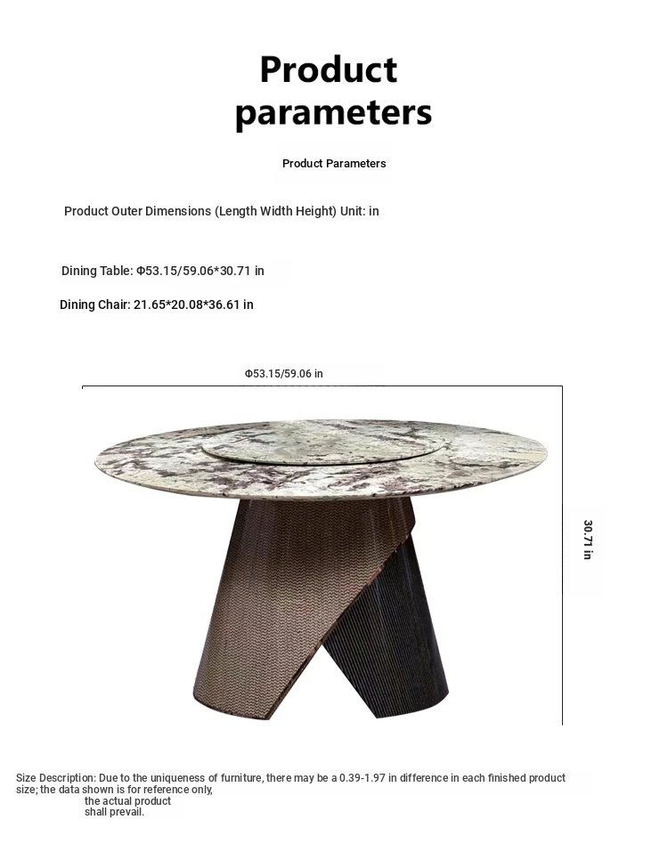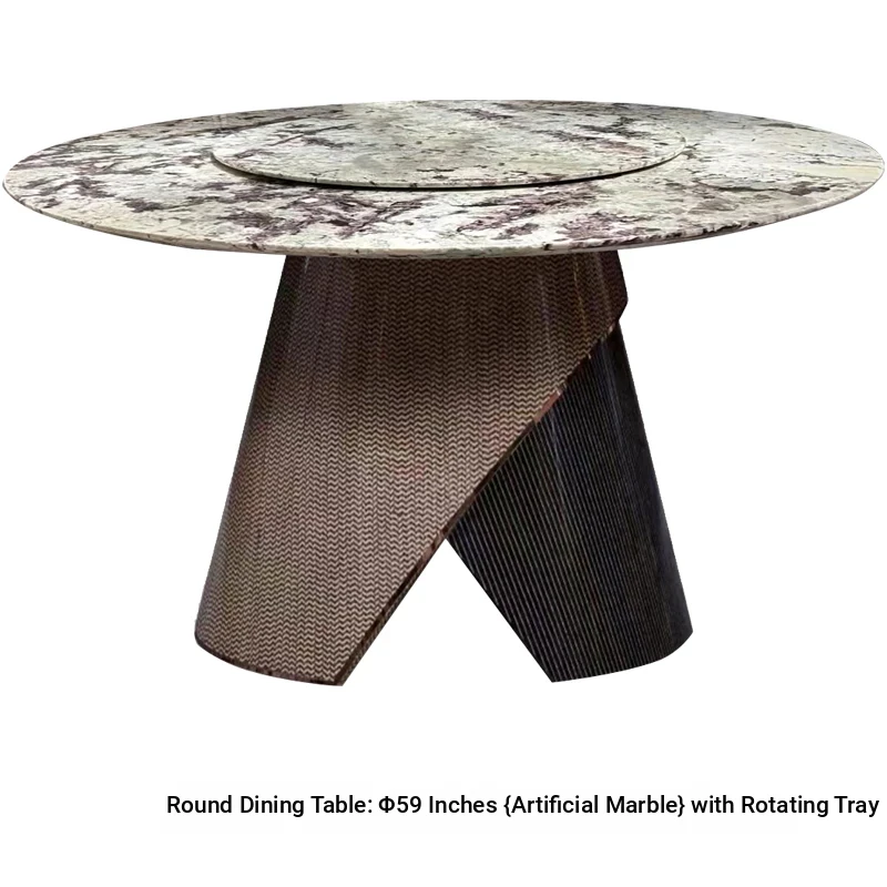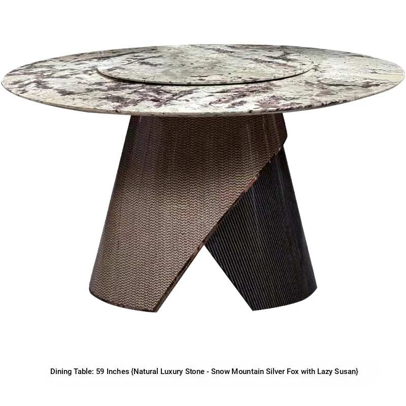 Round dining table: 59.06 in {natural luxury stone-Snow Mountain silver fox} with turntable