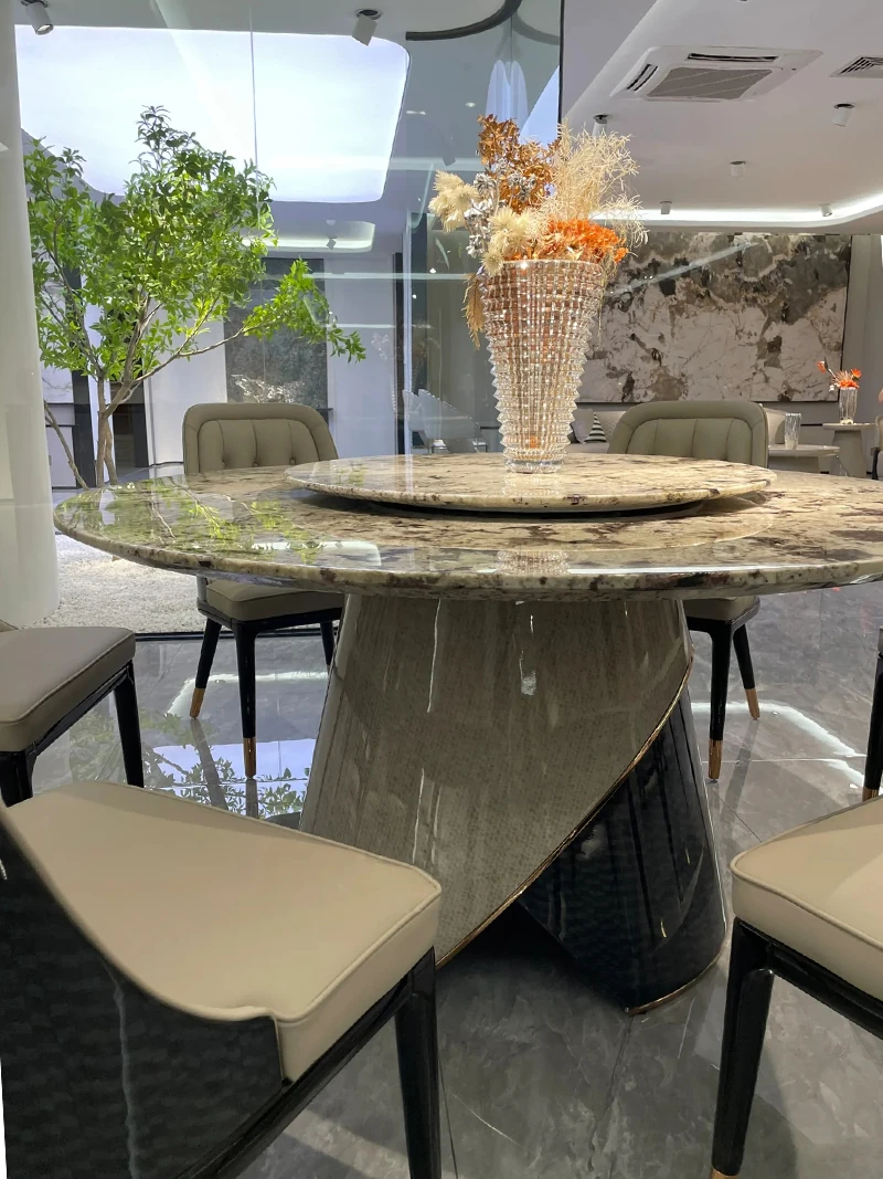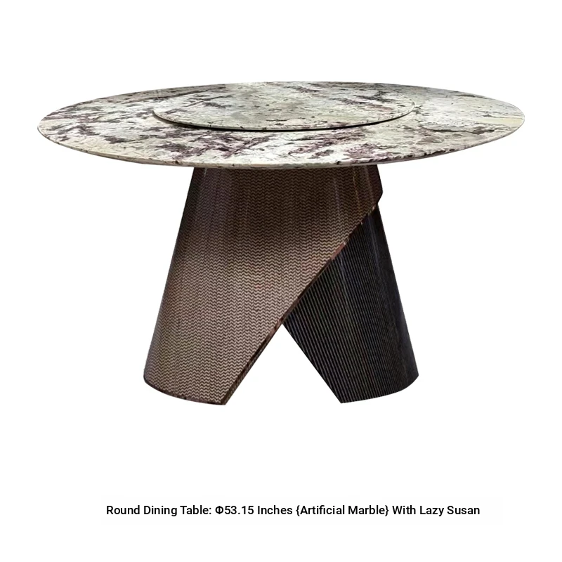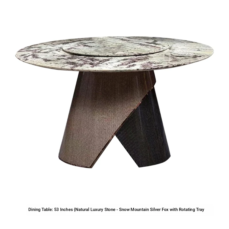 Round dining table: 53.15 in {natural luxury stone-Snow Mountain silver fox} with turntable