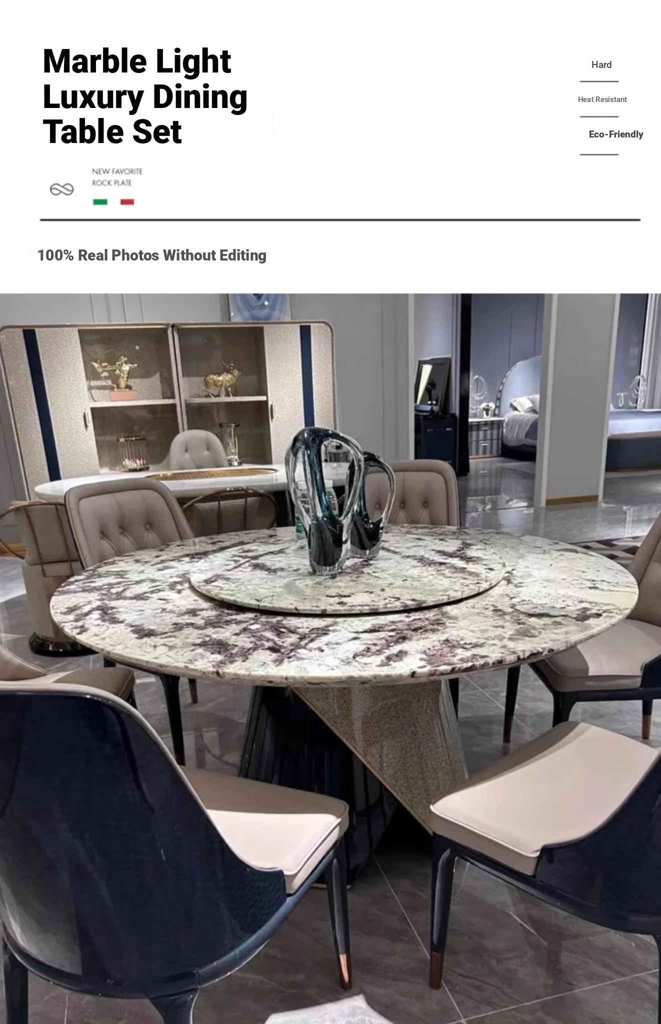 New Italian Luxury Marble Dining Table - Modern Villa High-End Solid Wood with Lacquer Finish - Designer Round Table for Luxurious Living