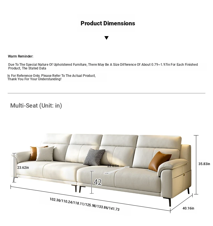 [Contact Surface Edition] Italian Import thickened Cowhide Multi-Person 133.86 in(Frame Lifetime Warranty)
