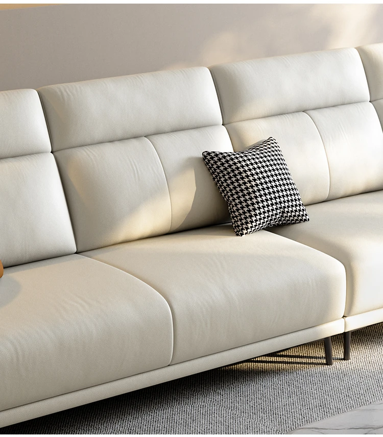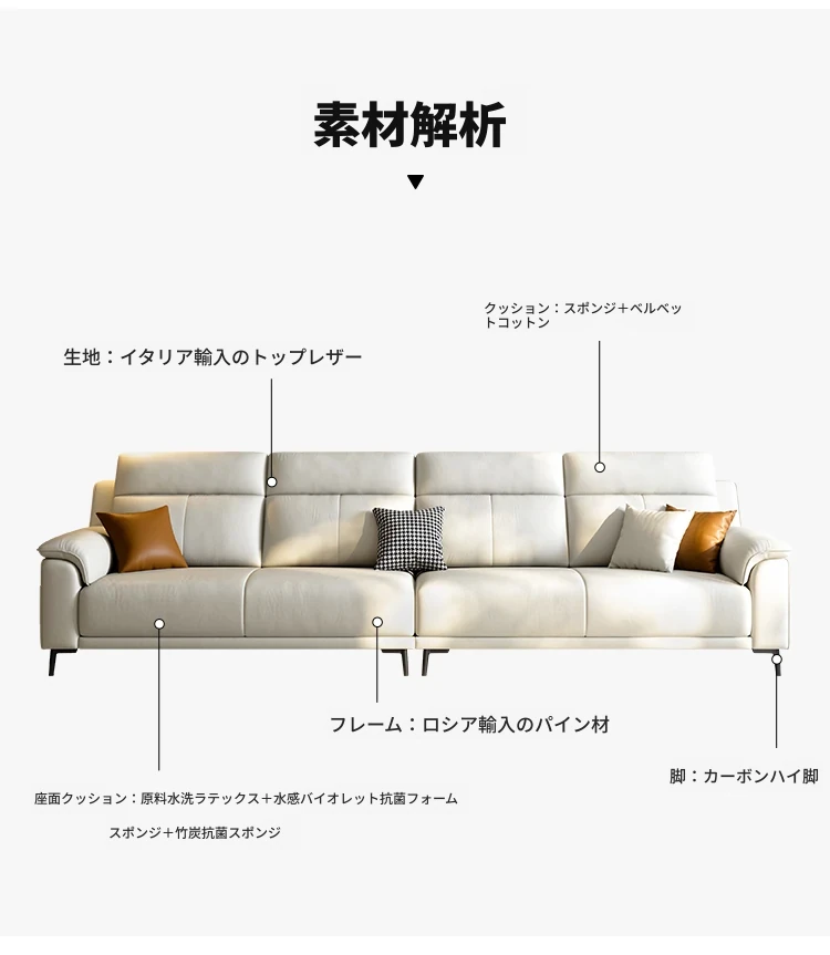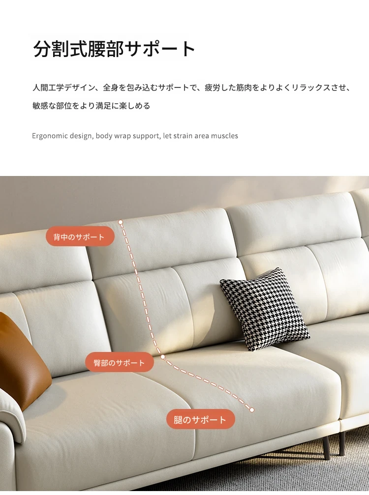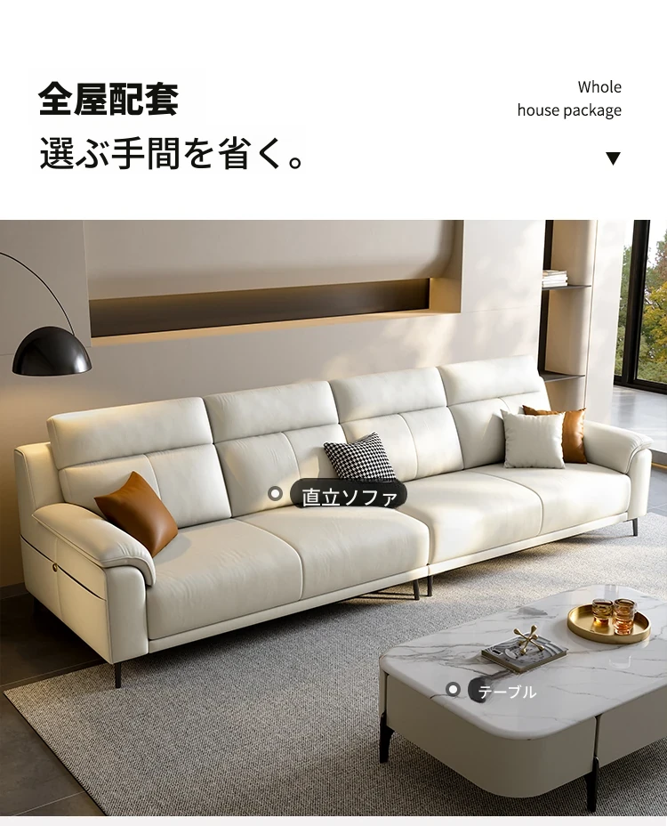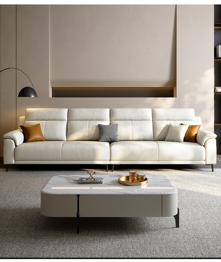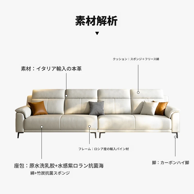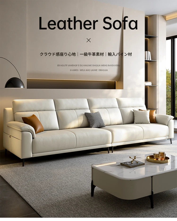 新作イタリアンミニマリスト本革ソファ|小型リビングに最適な現代的シンプルデザイン|3〜4人用の直列レザーソファで快適なひとときをお届けします!