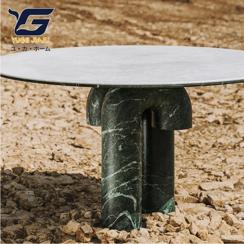 北欧スタイルの大理石ダイニングテーブル - イタリア製の中花白、1.35mのラウンドテーブル。別荘やクラブに最適なアウトドアガーデンリラックステーブル。スタイリッシュで機能的な空間を演出!