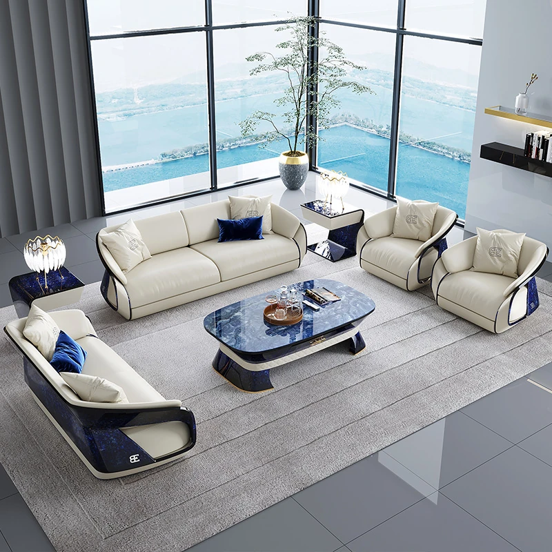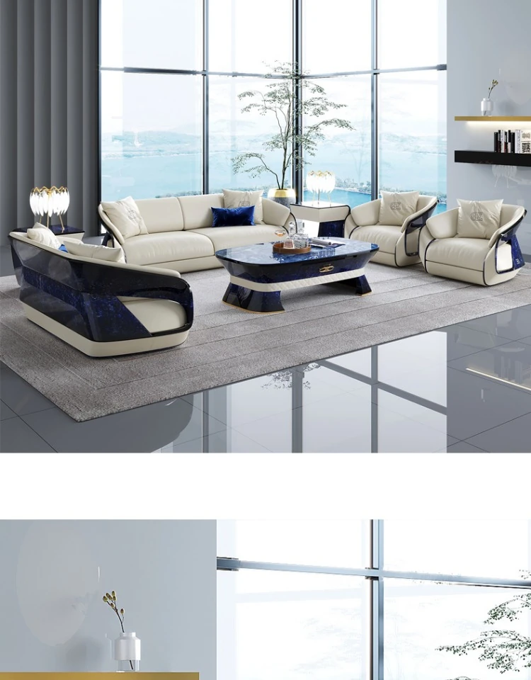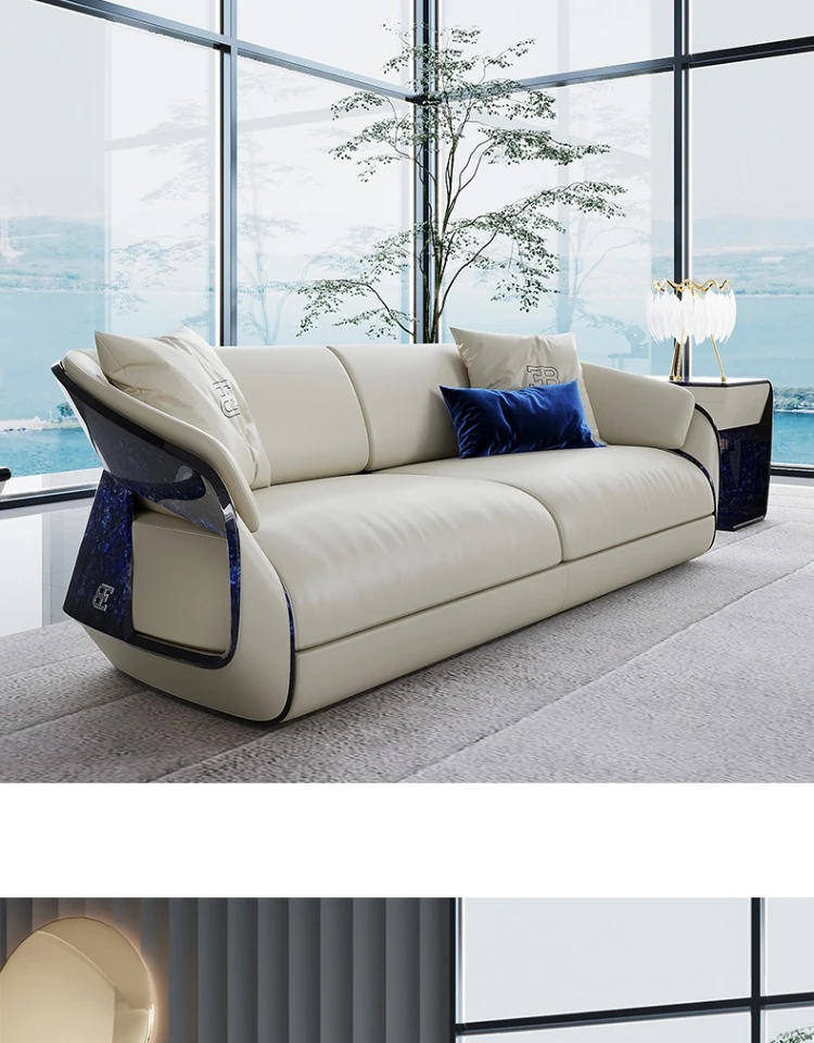 ポストモダン高級軽奢別荘用本革ソファセット|一流の贅沢、港式スタイルのリビングルームにぴったりなモデルルーム家具!おしゃれで快適な空間を演出します。