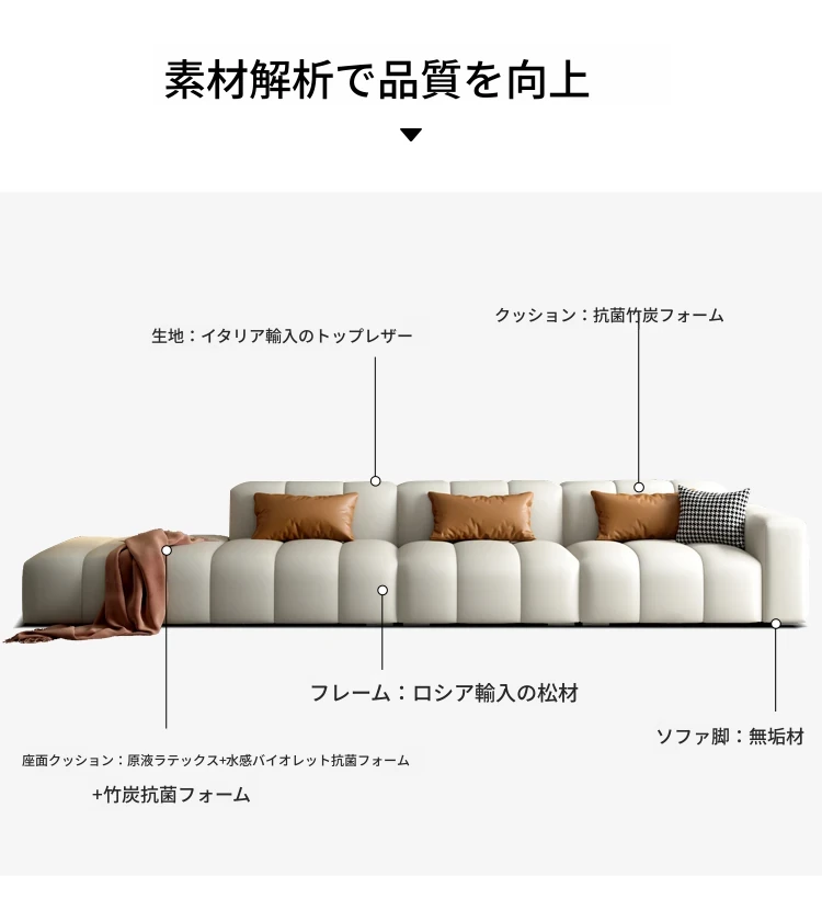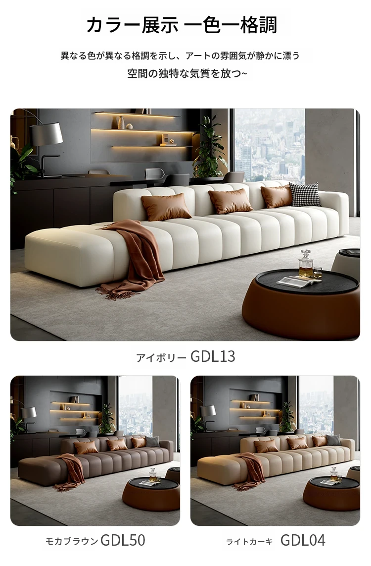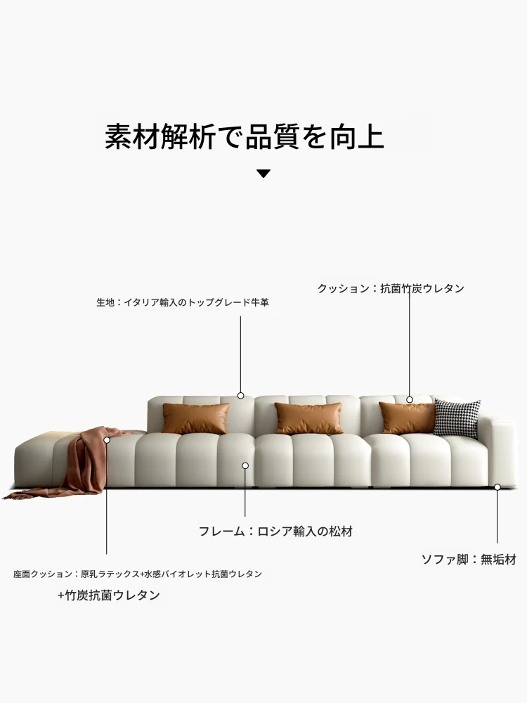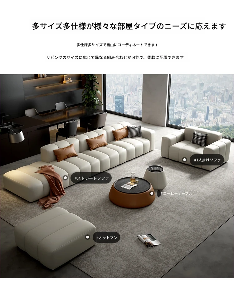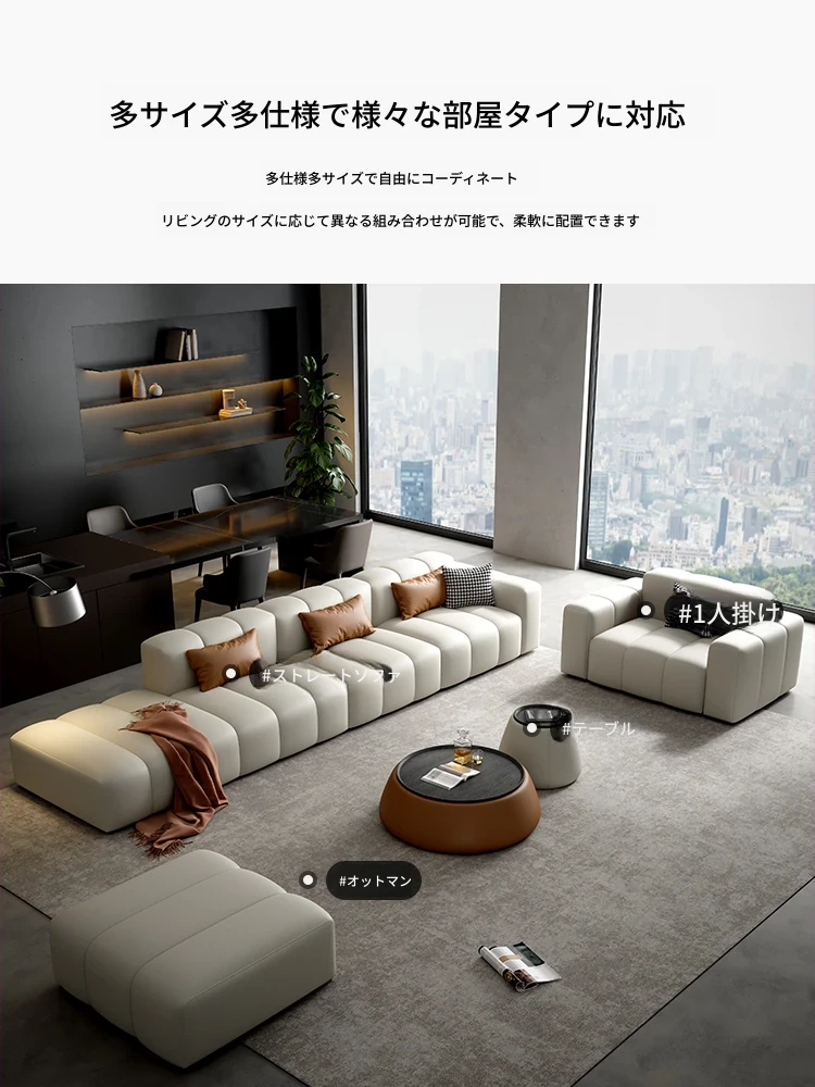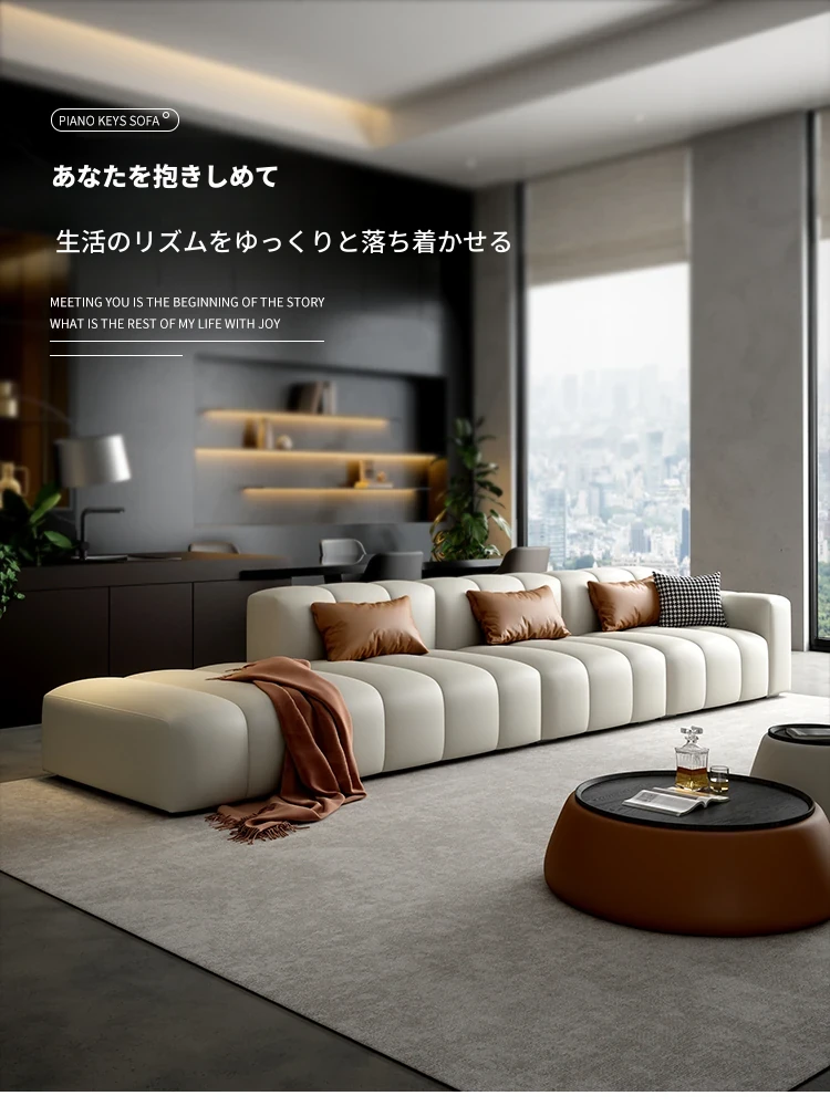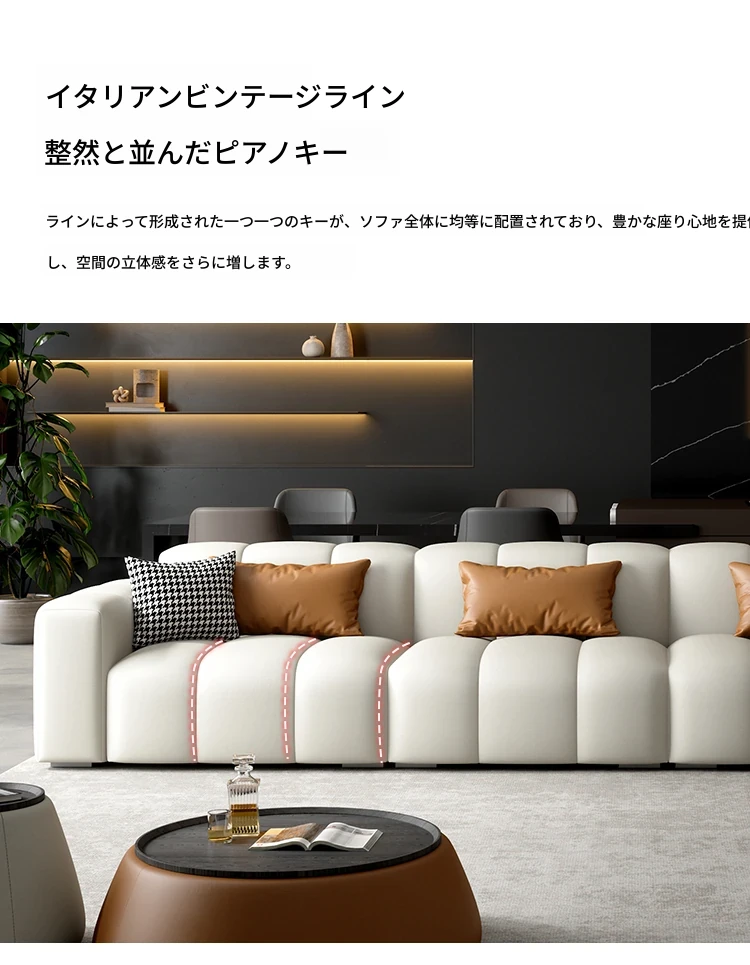 高級感溢れるピアノキー本革ソファ!イタリアンミニマリストデザイン、どんなリビングにもぴったり。上質な牛革使用で、快適さとスタイルを両立。小型・大型どちらの部屋にも最適な直排ソファ!