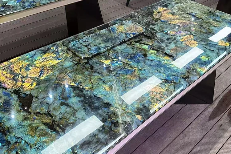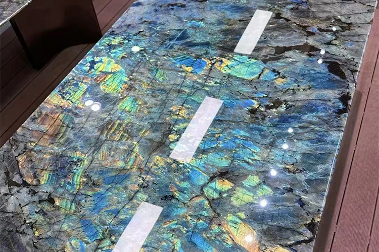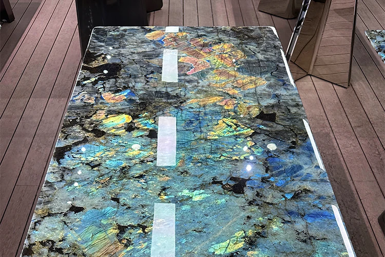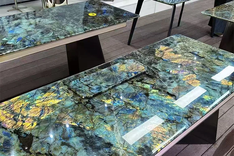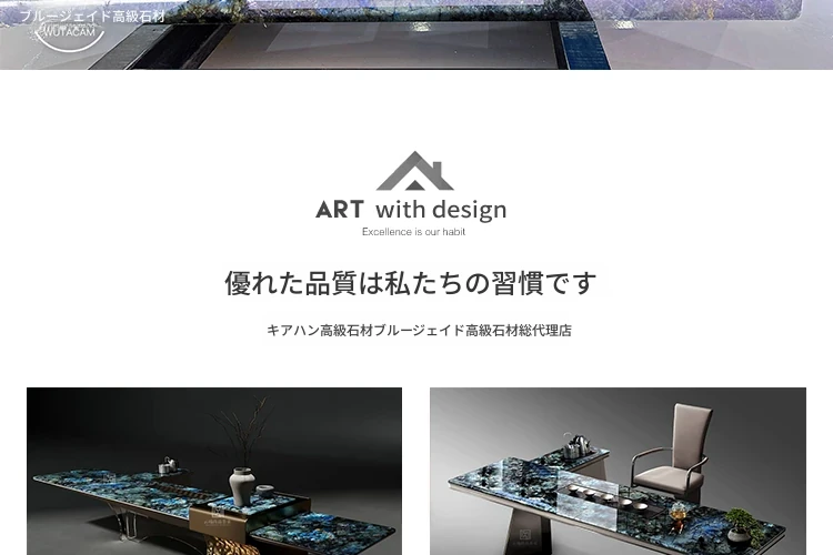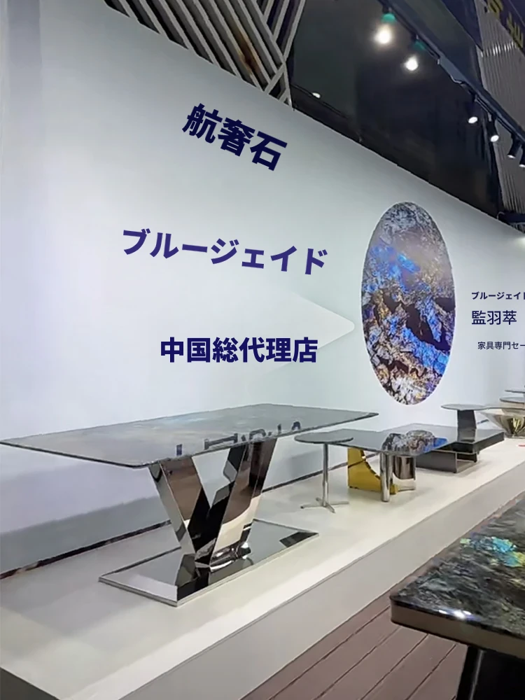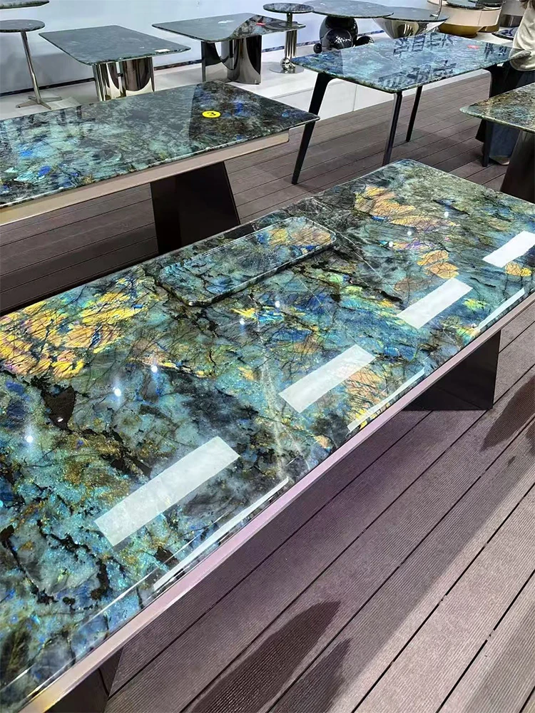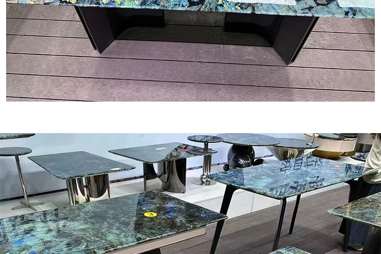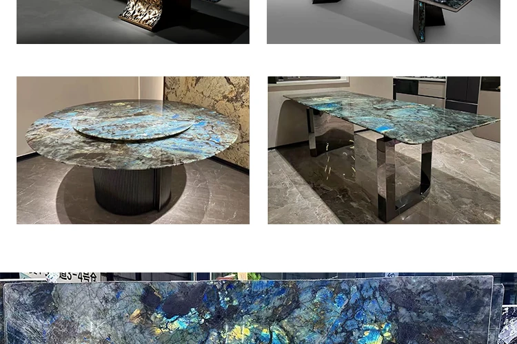 純天然アフリカ・マダガスカル産ブルージェイド輸入の高級石製長方形ダイニングテーブル、イタリアンスタイルのラウンドテーブルで、洗練された空間を演出!