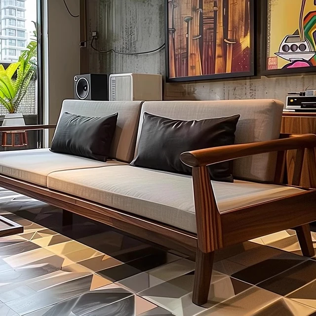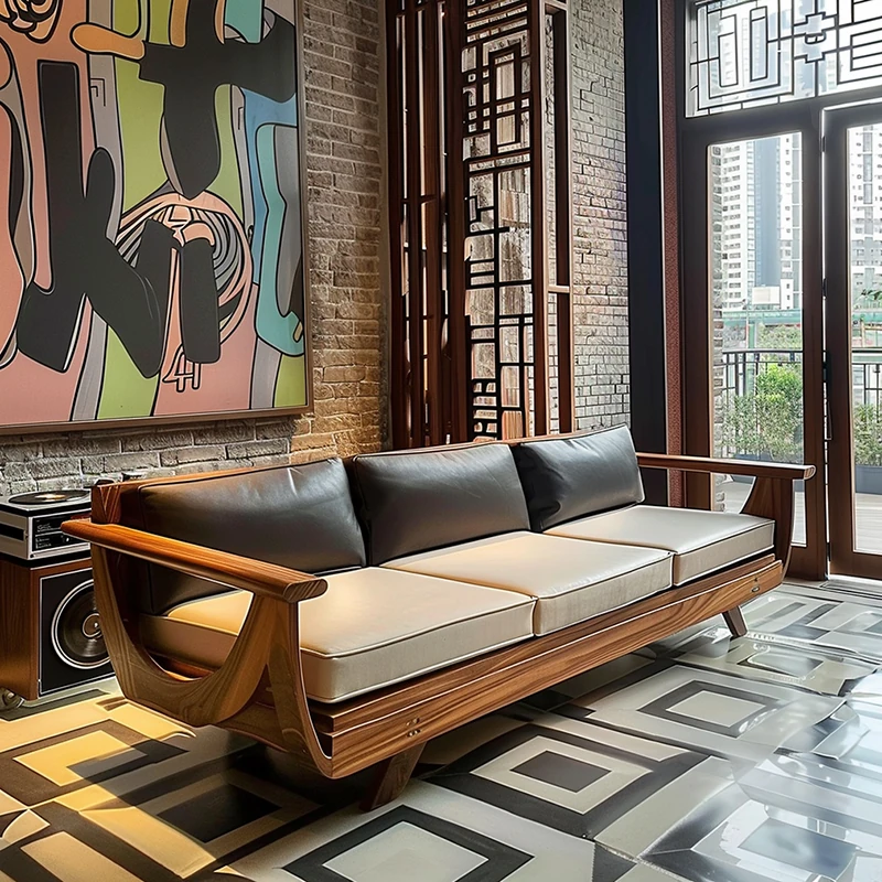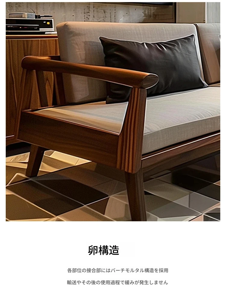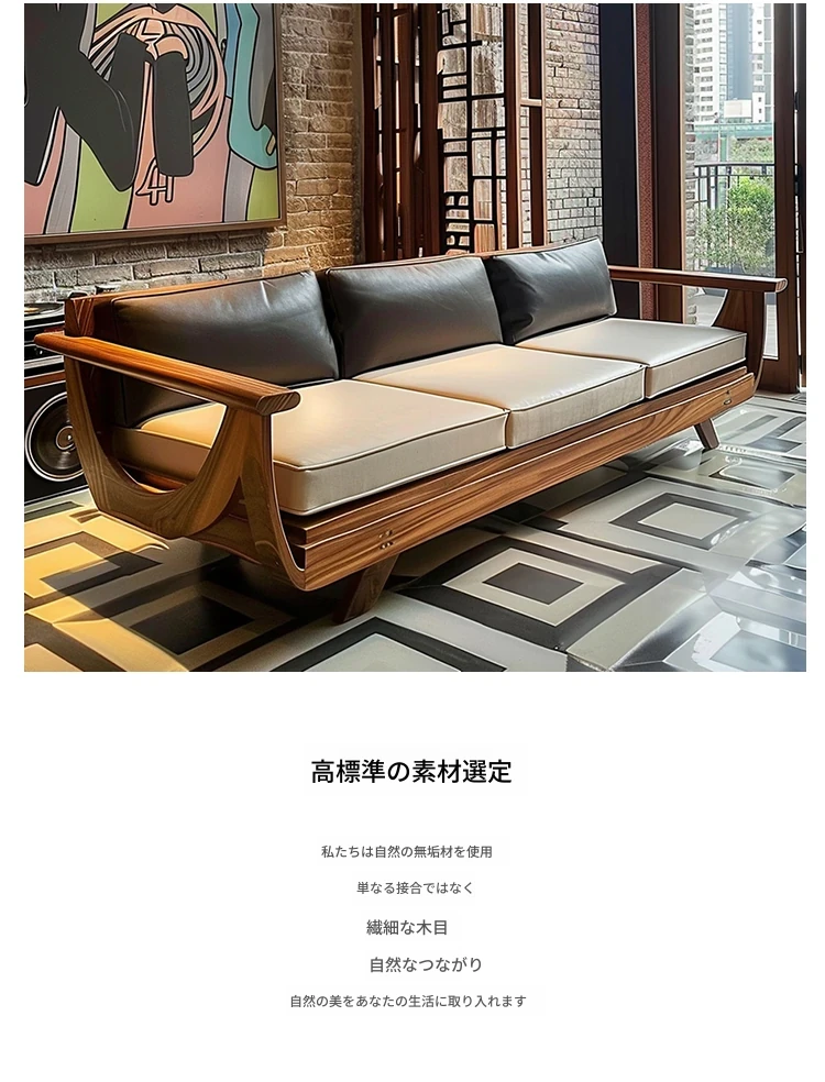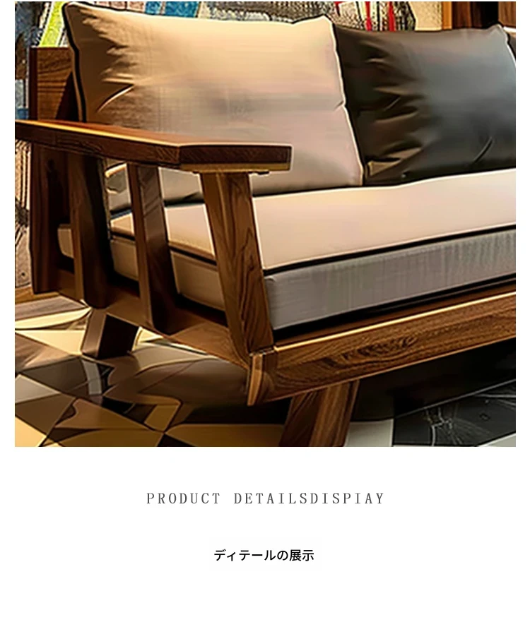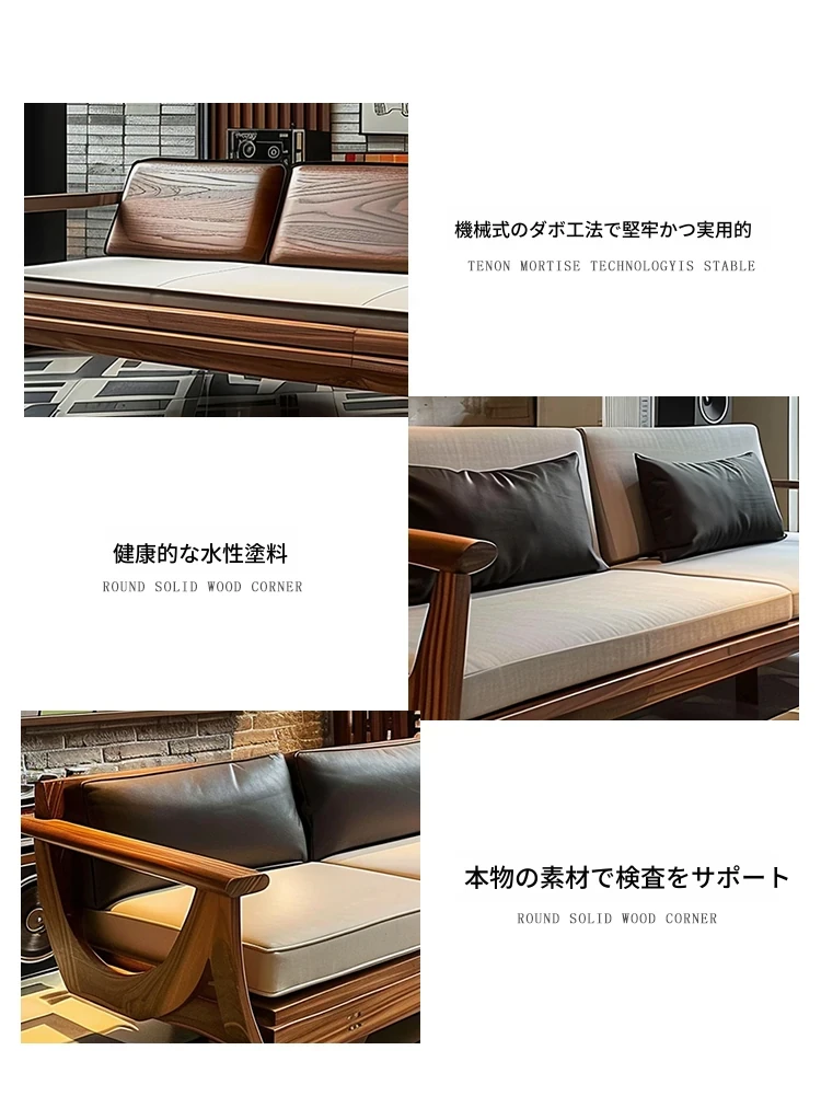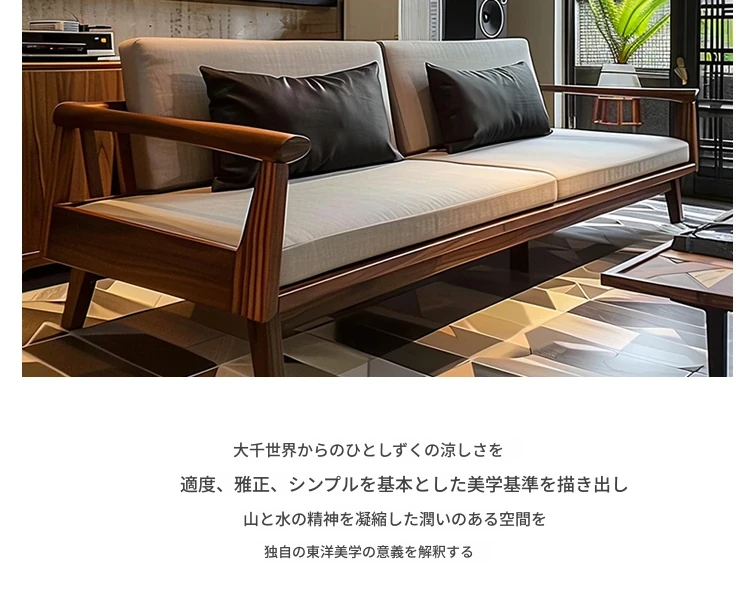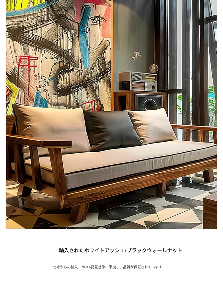 新中式禅スタイルのホワイトアッシュソファ - 高級感あふれるリビングにぴったり!北米産のブラックウォールナットを使用した直線デザインの無垢材家具で、心安らぐ空間を演出します。