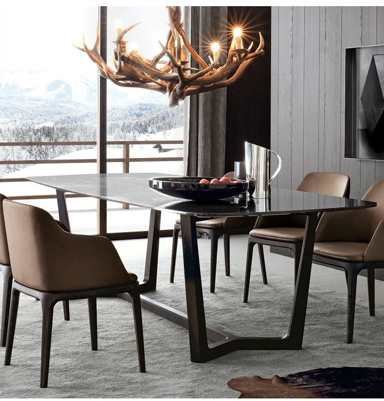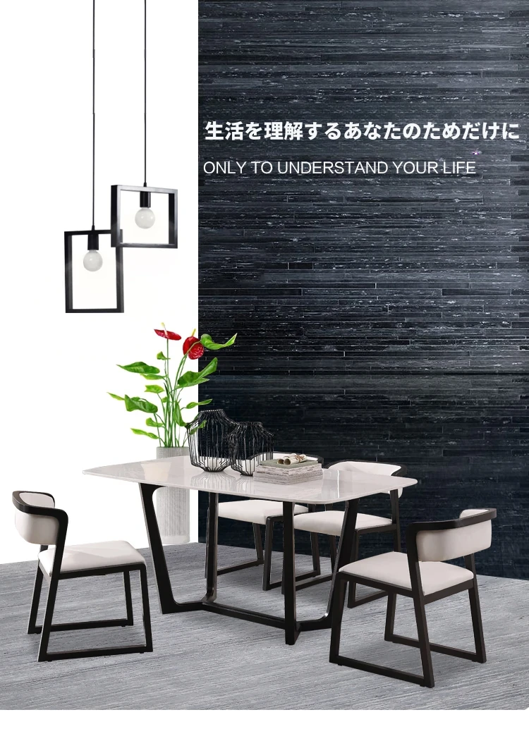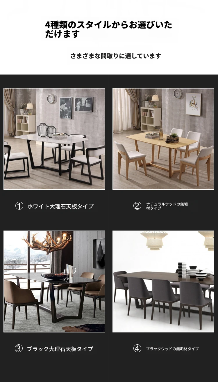 北欧スタイル大理石ダイニングテーブル|モダンシンプルなホワイトアッシュ材使用|ファッションableな実木製6人用スクエアテーブルセット|食卓を美しく彩る上質な家具
