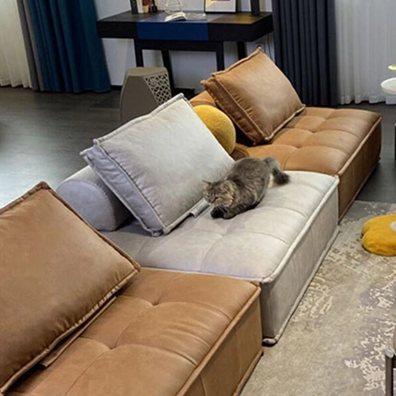 豆腐ブロックソファ 一人用 イタリアンミニマリストスタイル テクスチャー布 モジュラー 四角いレザー フロアタイプ ライフスタイルチェア 小型住宅向け コンパクトでスタイリッシュな組み合わせ!