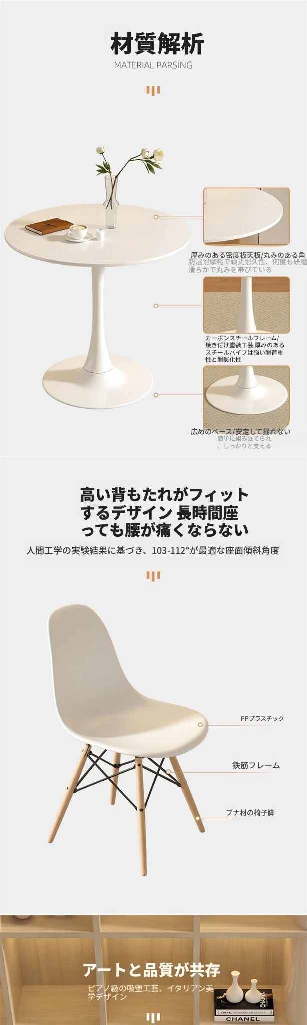 四脚の白いアートチェア