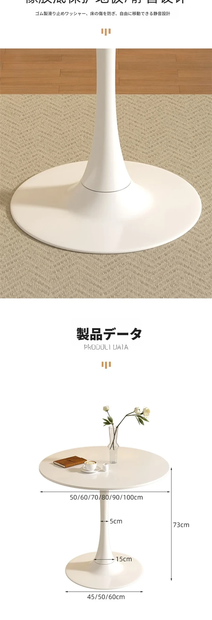 小さな丸テーブル【クリームホワイト】50*50*73