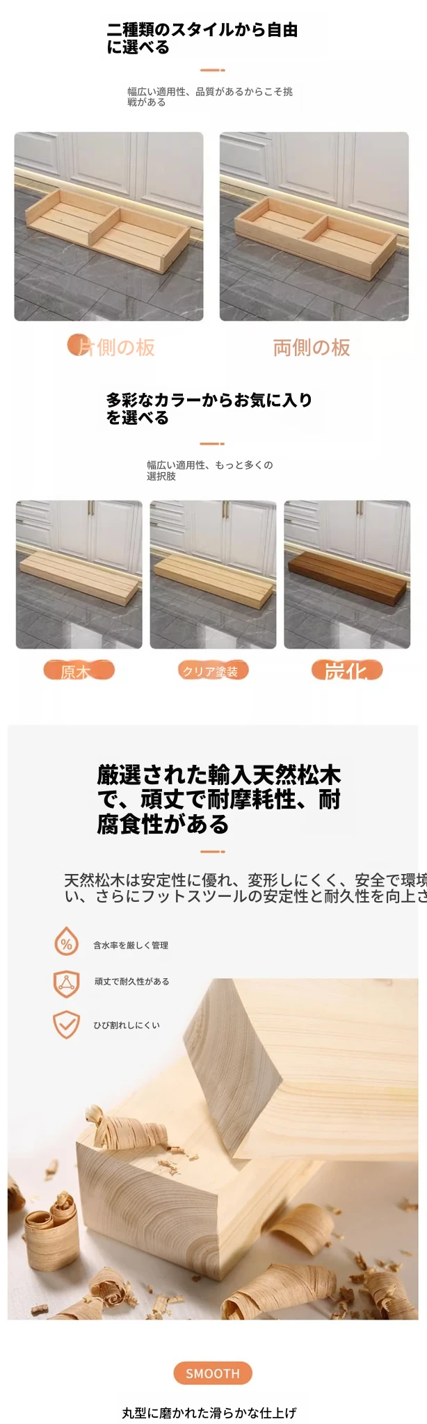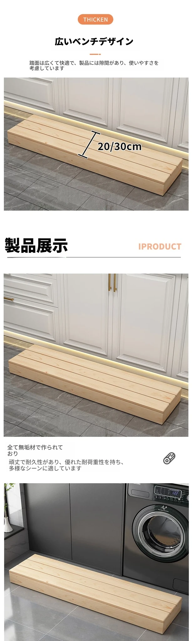 80x30x15ナチュラルウッド【3つのサポート+2つの仕切り板】