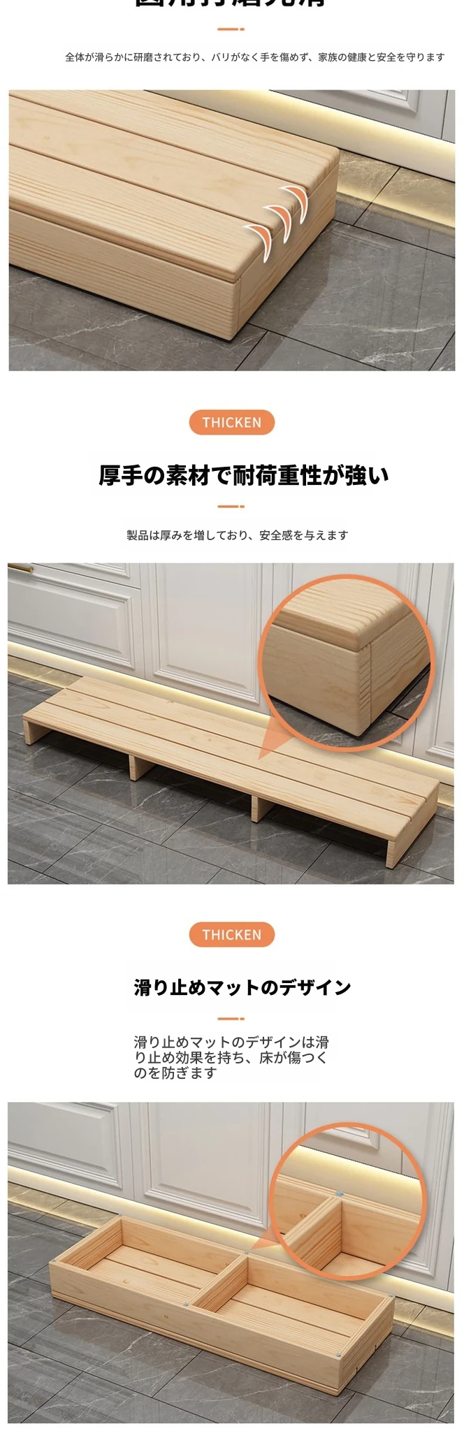80x30x10ナチュラルウッド【3つのサポート+2つの仕切り板】