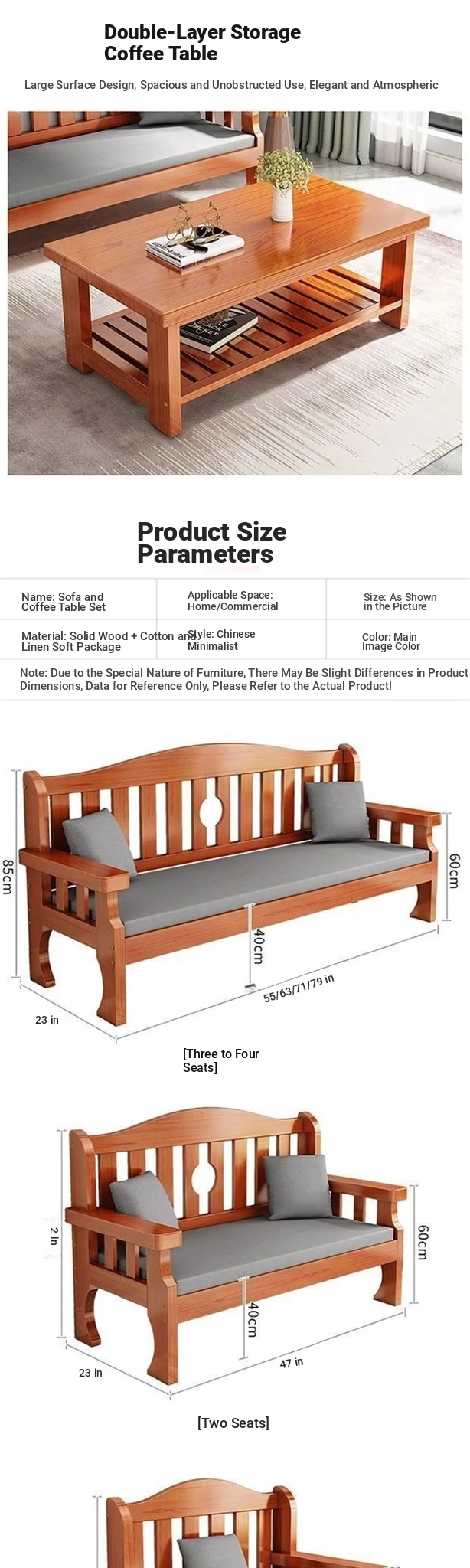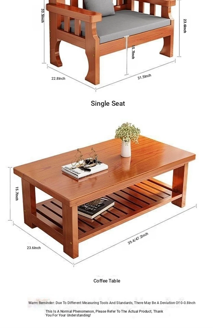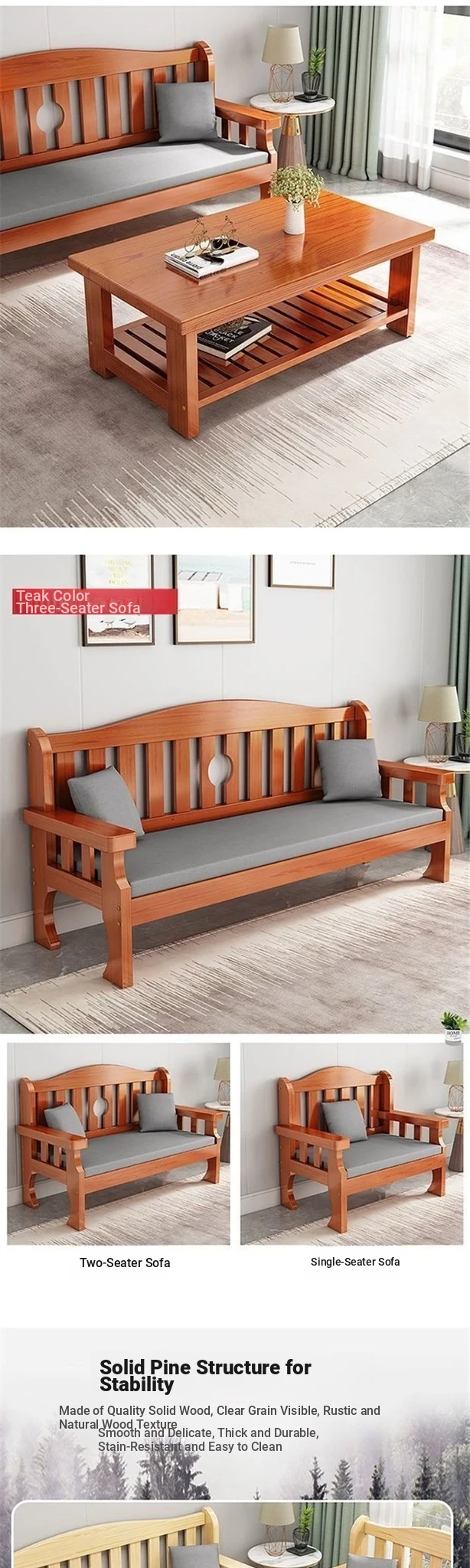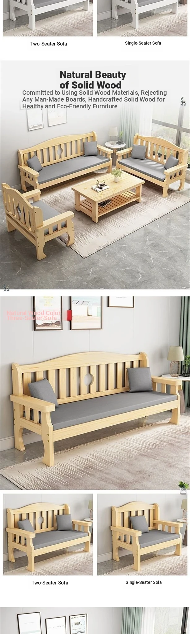 Solid Wood Sofa and Coffee Table Set - Compact Bench for Small Living Rooms, Bedrooms, and Balconies. Affordable, Minimalist Design for Three People. Perfect for Cozy Spaces!