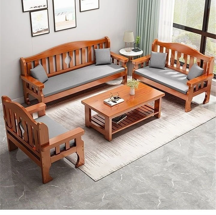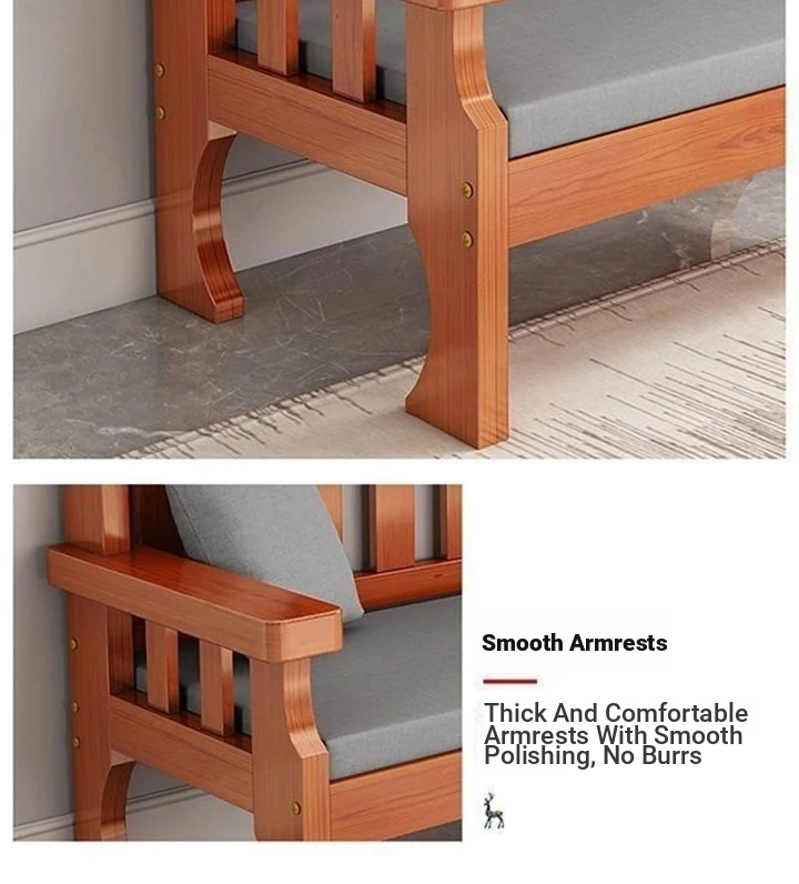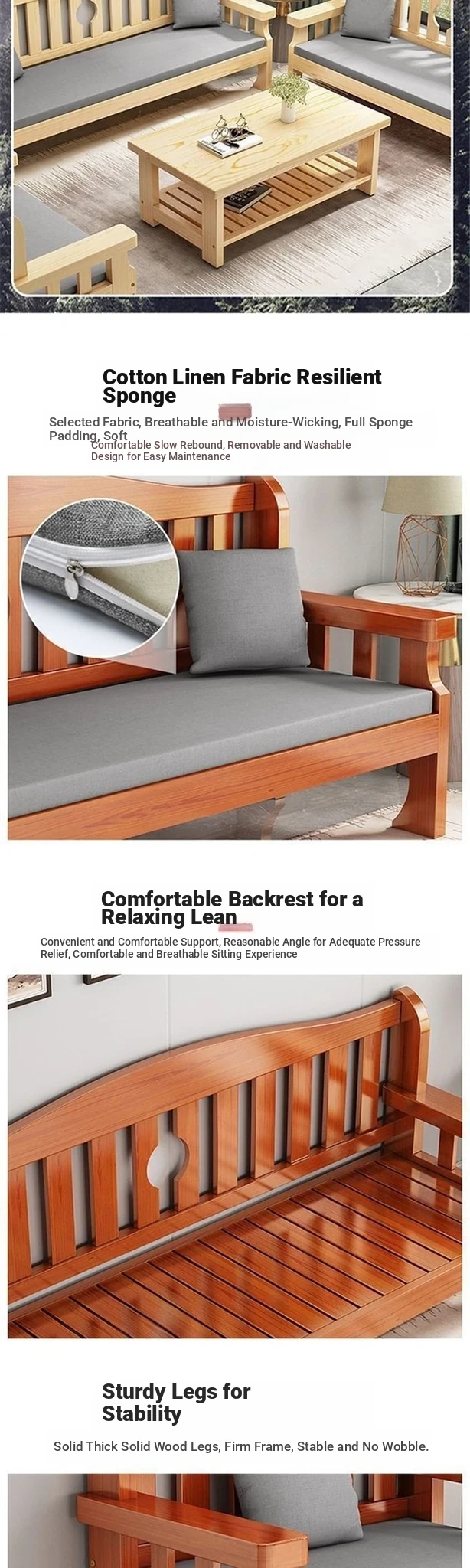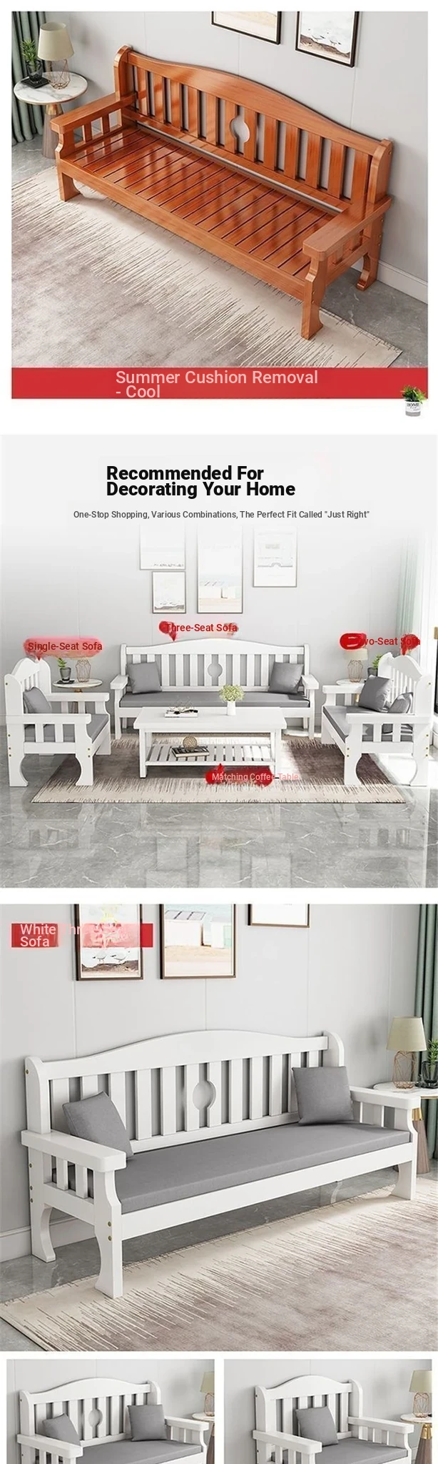 Solid Wood Sofa and Coffee Table Set - Compact Bench for Small Living Rooms, Bedrooms, and Balconies. Affordable, Minimalist Design for Three People. Perfect for Cozy Spaces!