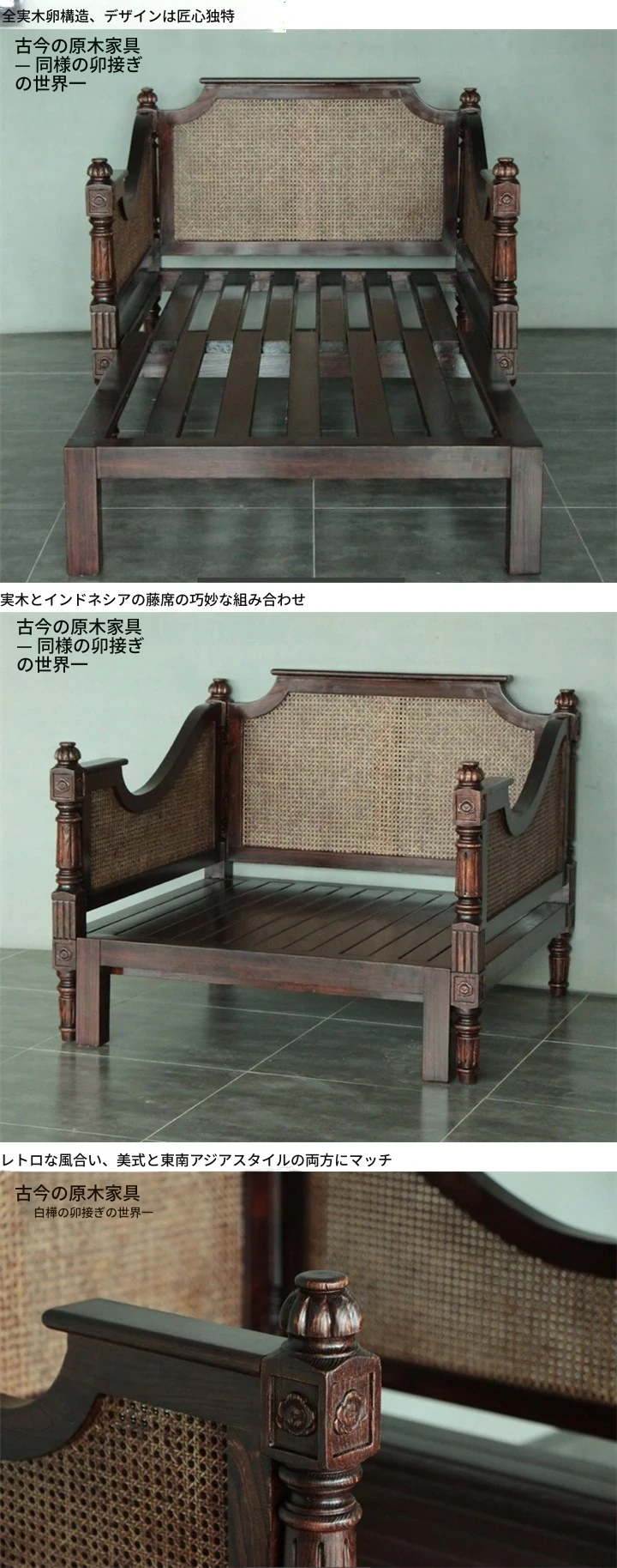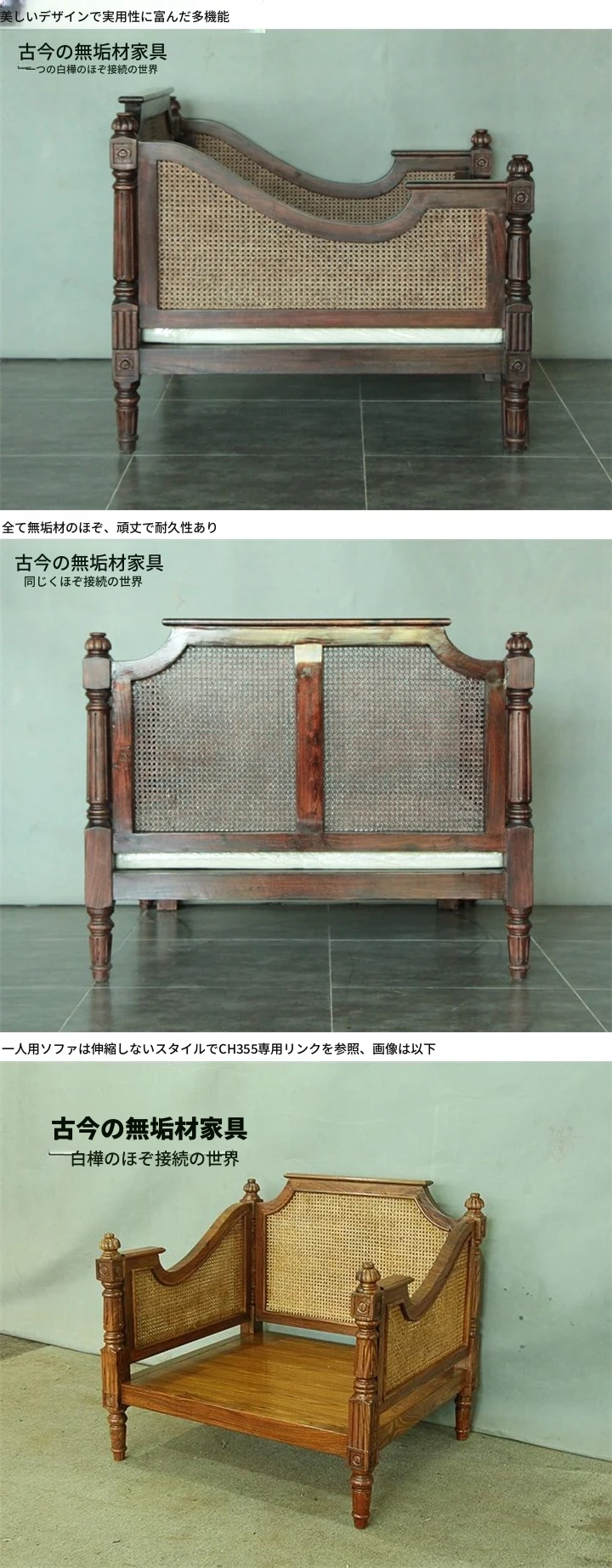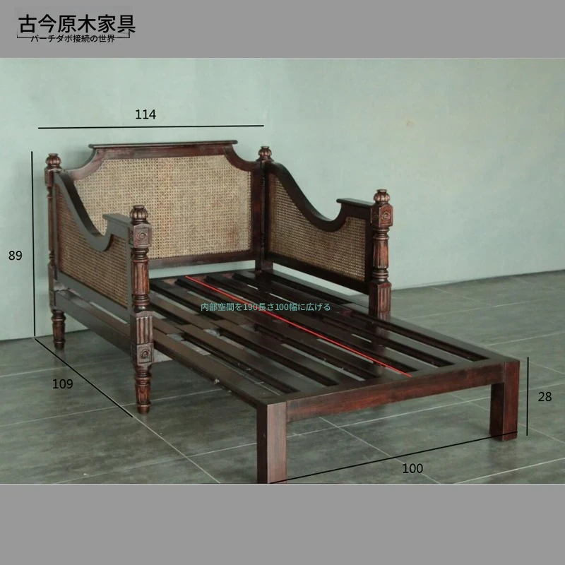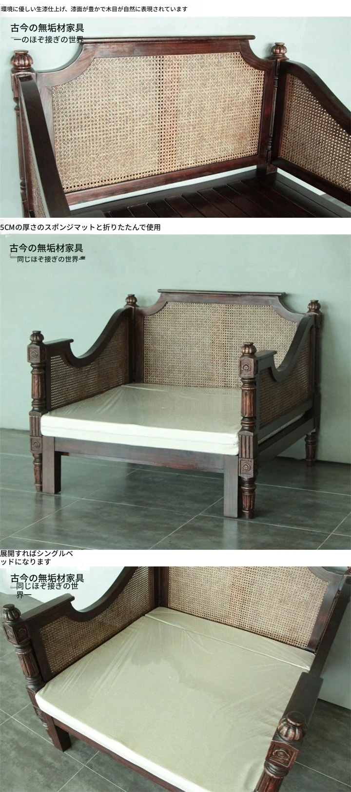 東南アジア風の天然木製伸縮ソファベッドCH355-1|アメリカンスタイルの座・寝兼用折りたたみリラックスソファで、心地よいひとときをお届けします!