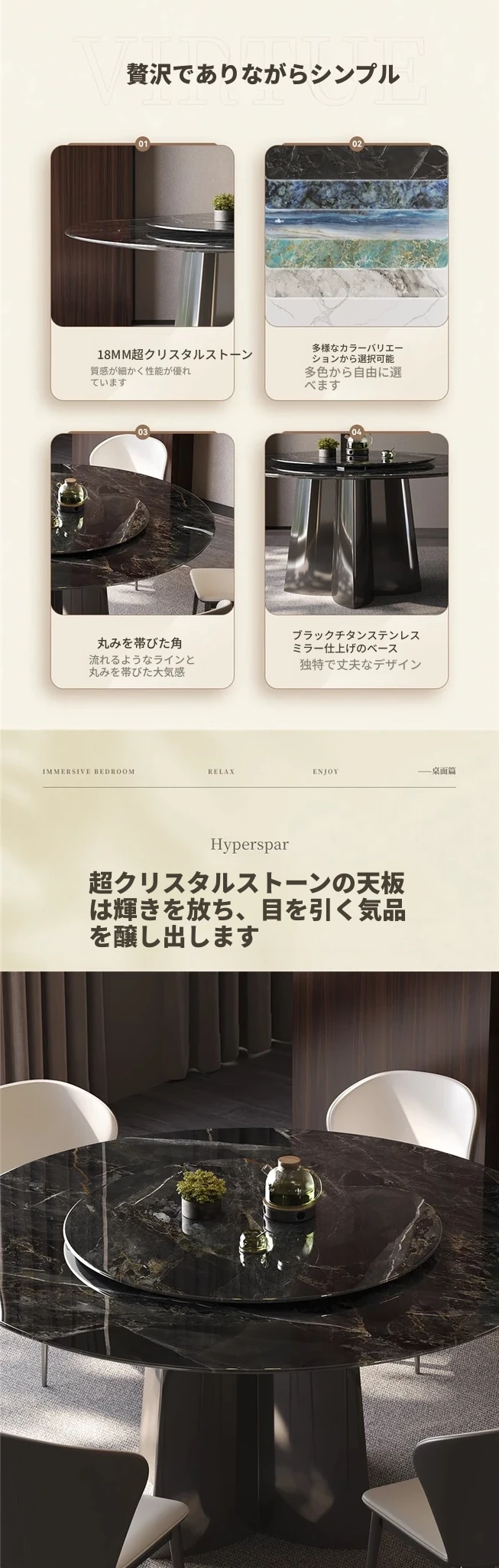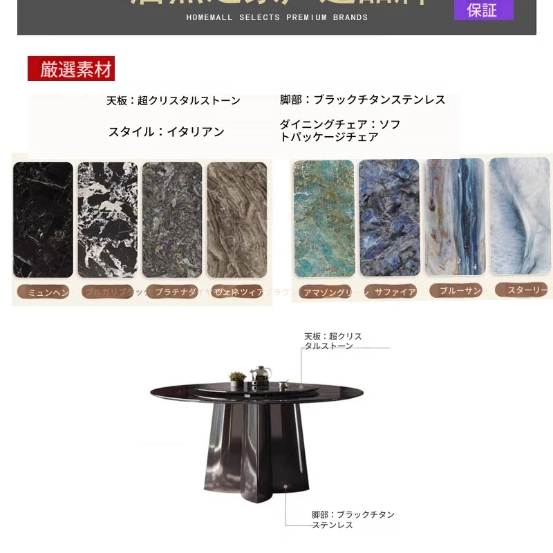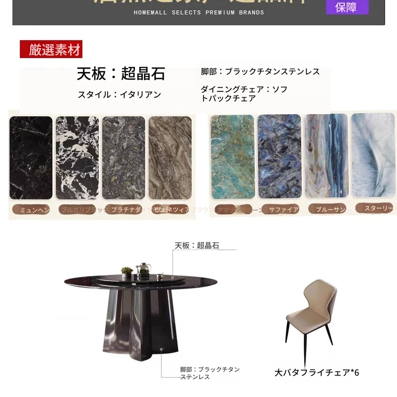 【回転台プレゼント】超クリスタル石ダイニングテーブル+6脚のスペース椅子