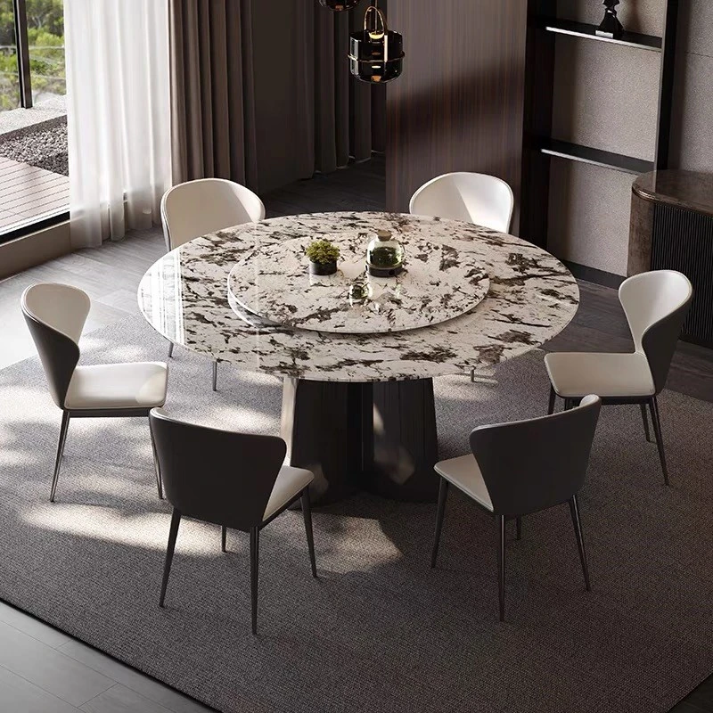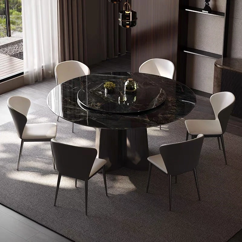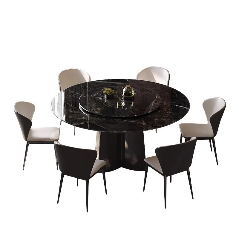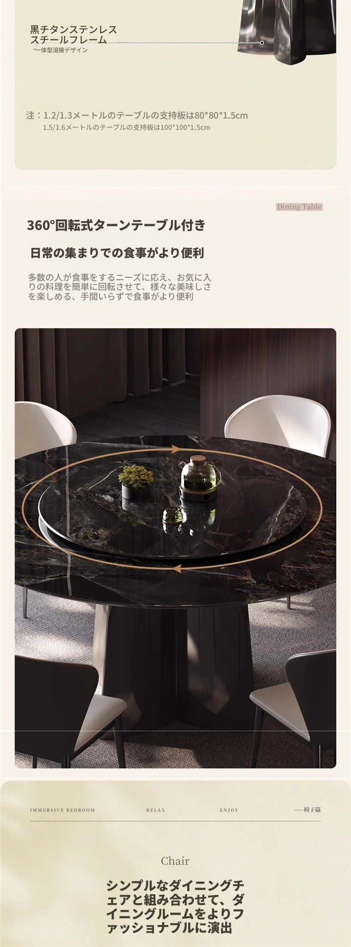 【回転台プレゼント】岩板ダイニングテーブル+6脚のスペース椅子
