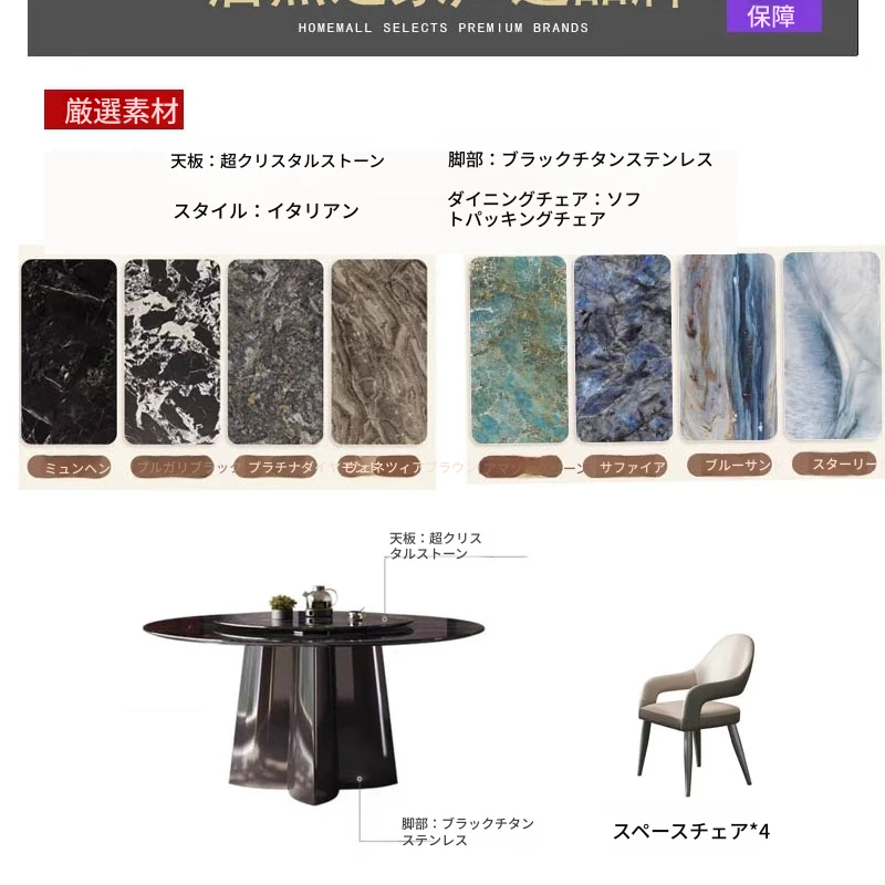 【回転台プレゼント】超クリスタル石ダイニングテーブル+4脚のスペース椅子