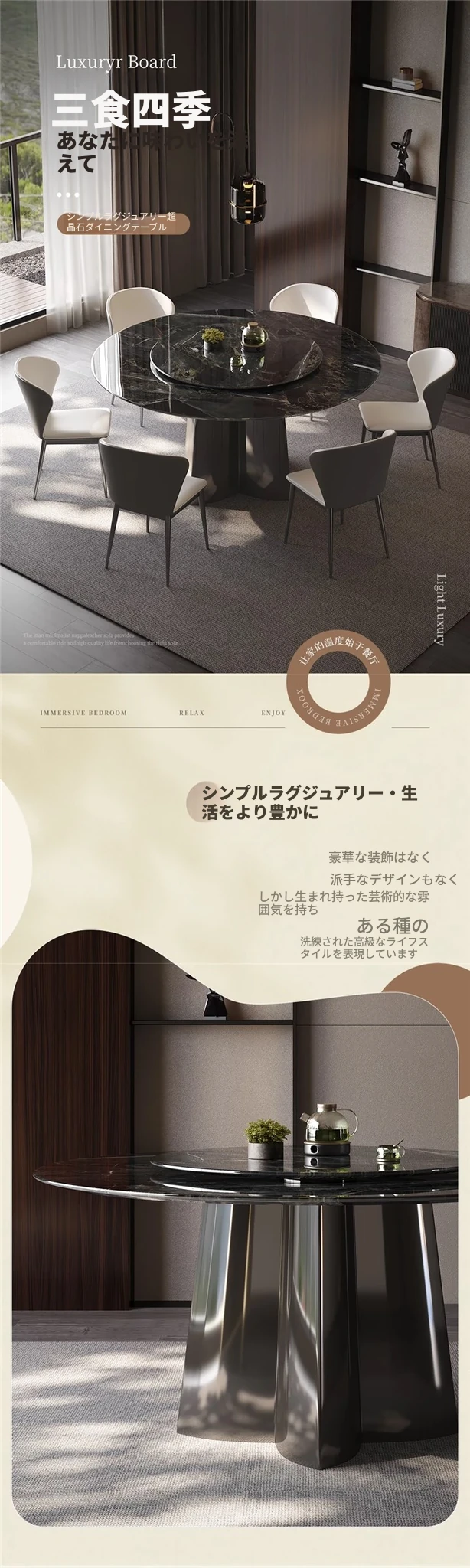 【回転台プレゼント】超クリスタル石ダイニングテーブル+8脚のスペース椅子