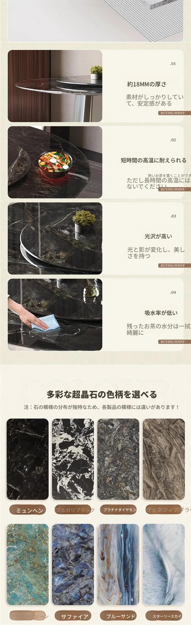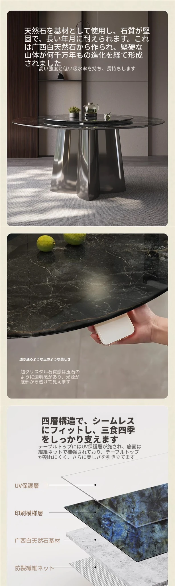 【回転台プレゼント】超クリスタル石単体ダイニングテーブル(厚さ1.8cm)