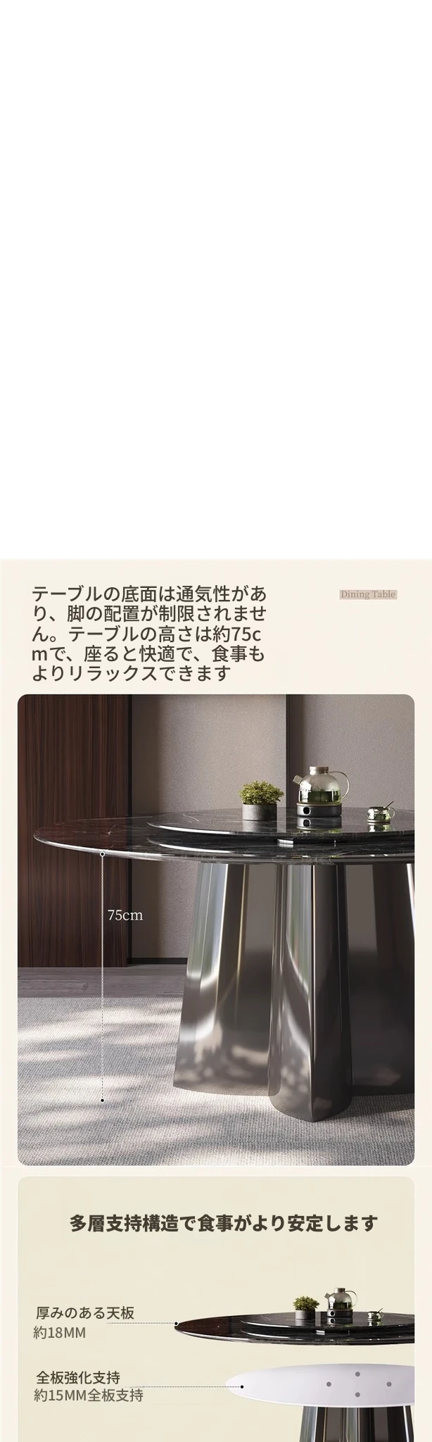 【回転台プレゼント】岩板単体ダイニングテーブル(厚さ1.2cm)