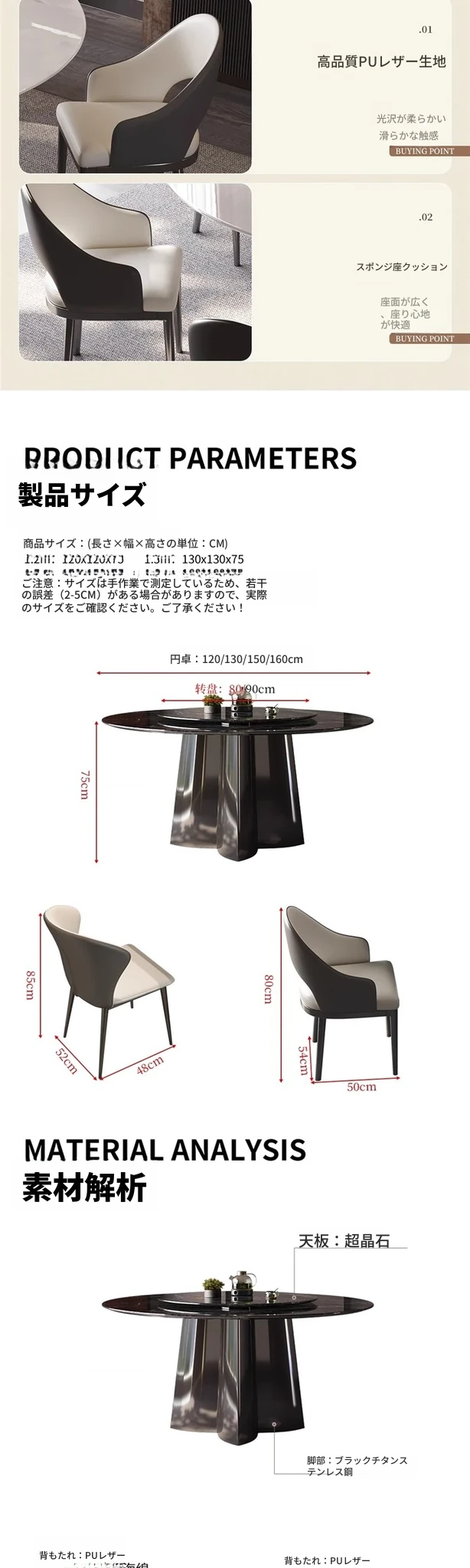 【回転台プレゼント】岩板ダイニングテーブル+4脚のスペース椅子