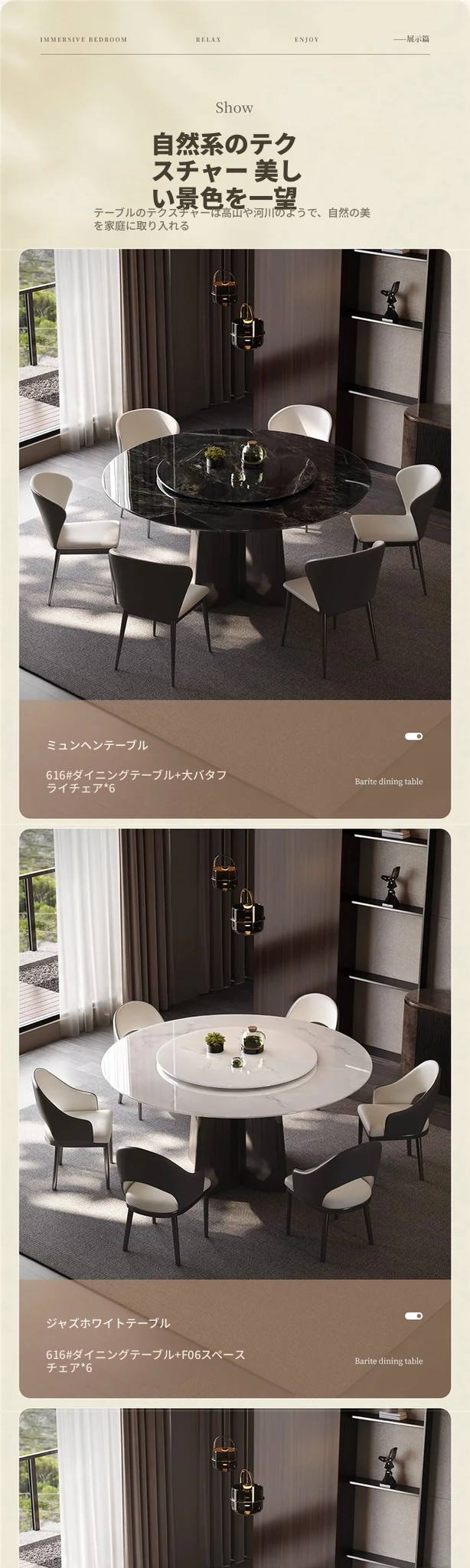 【回転台プレゼント】岩板ダイニングテーブル+8脚のスペース椅子