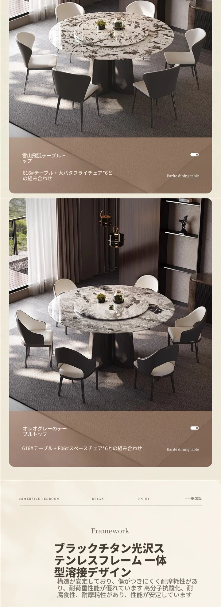 【回転台プレゼント】岩板ダイニングテーブル+6脚の大バタフライ椅子