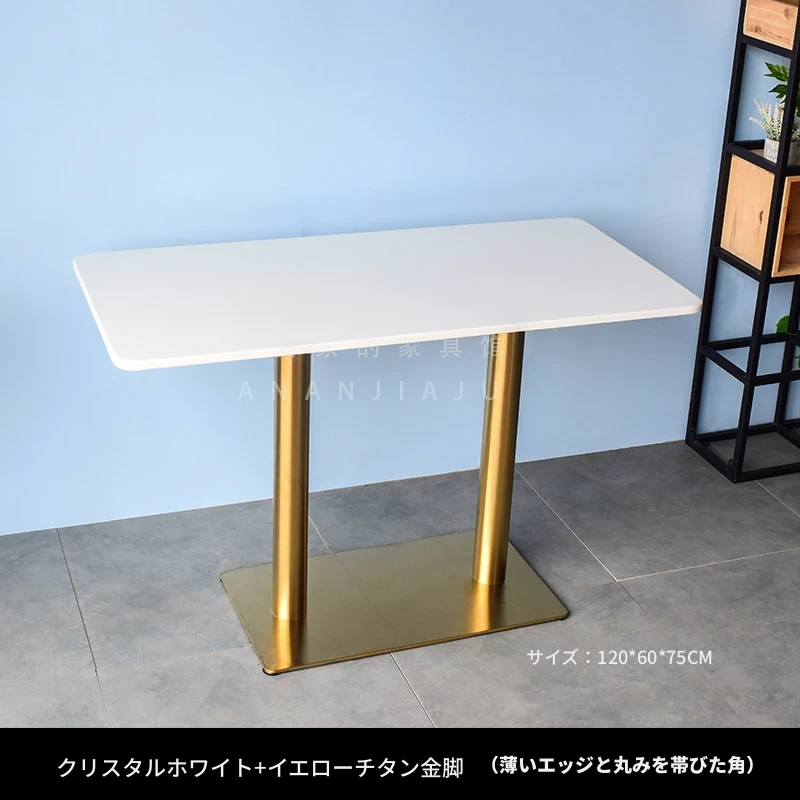 ジャズホワイトロングテーブル+イエロータイタニウム脚