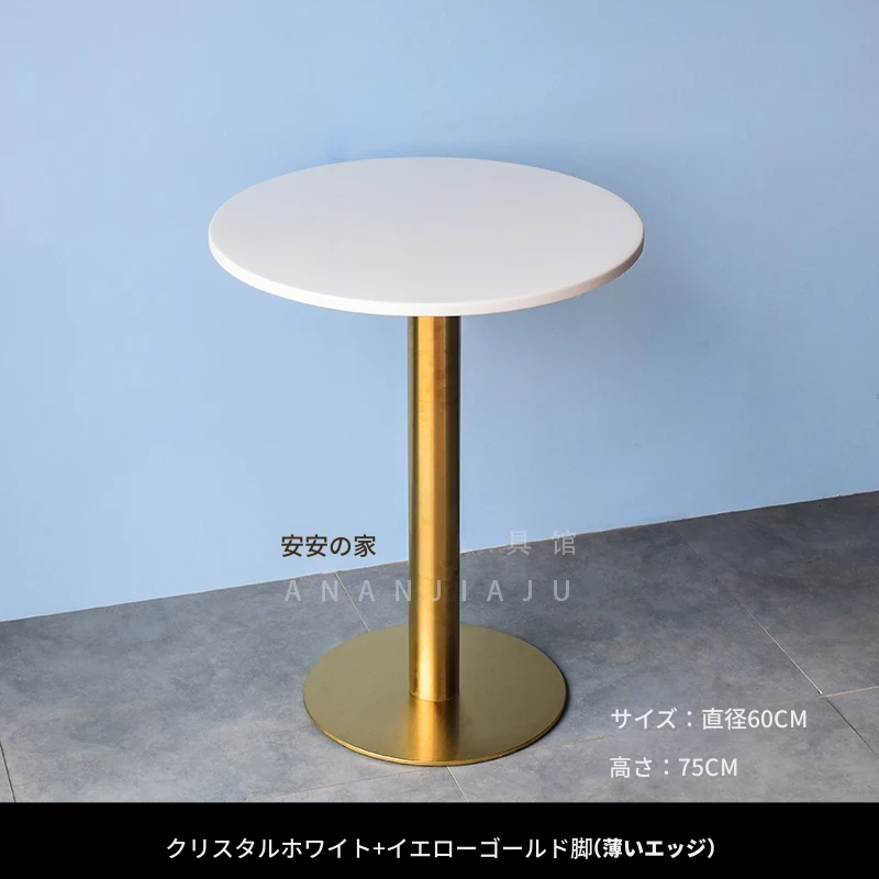 ジャズホワイトラウンドテーブル+イエロータイタニウム脚