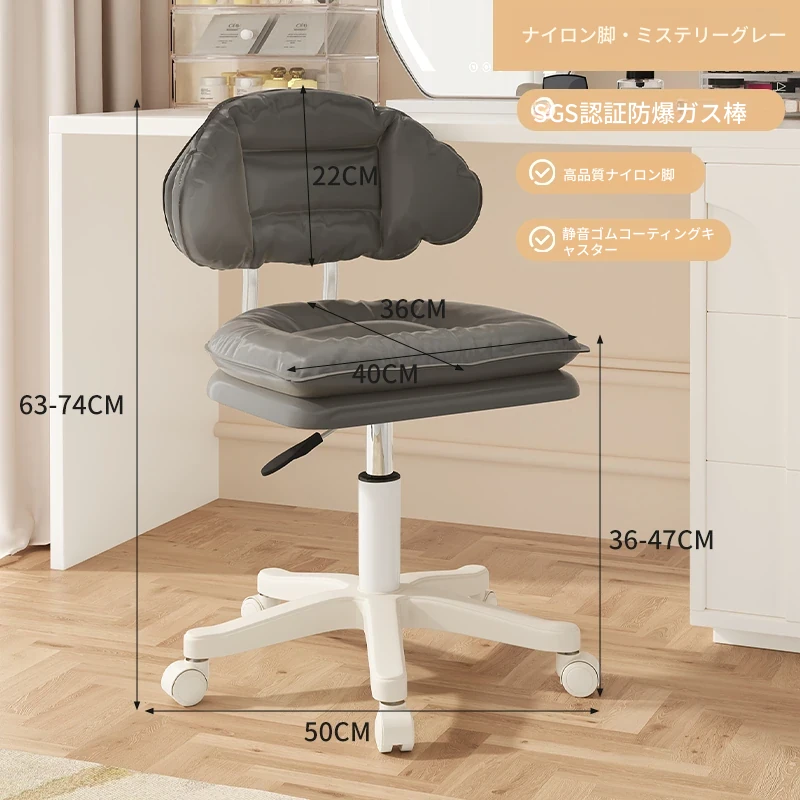 【神秘グレー雲】ミツメ静音キャスター&回転防爆ガスシリンダー/cf8