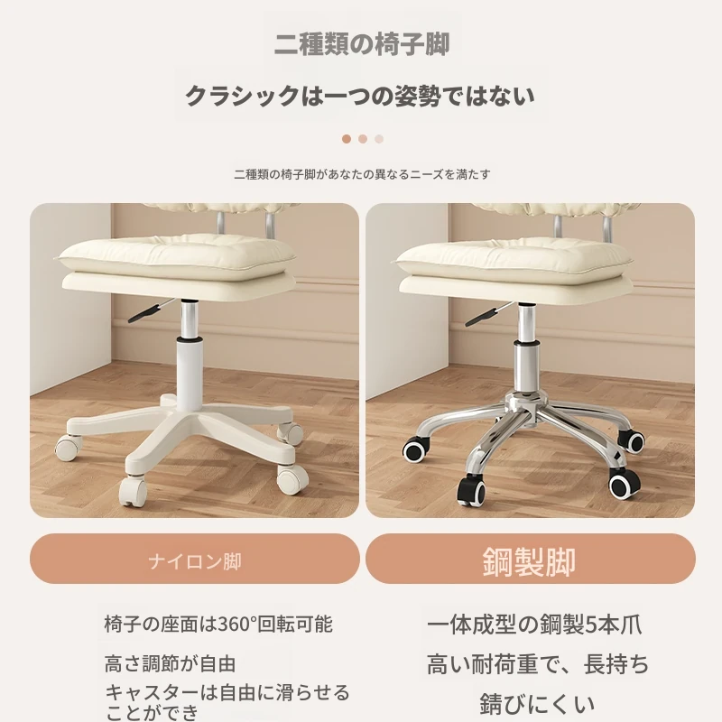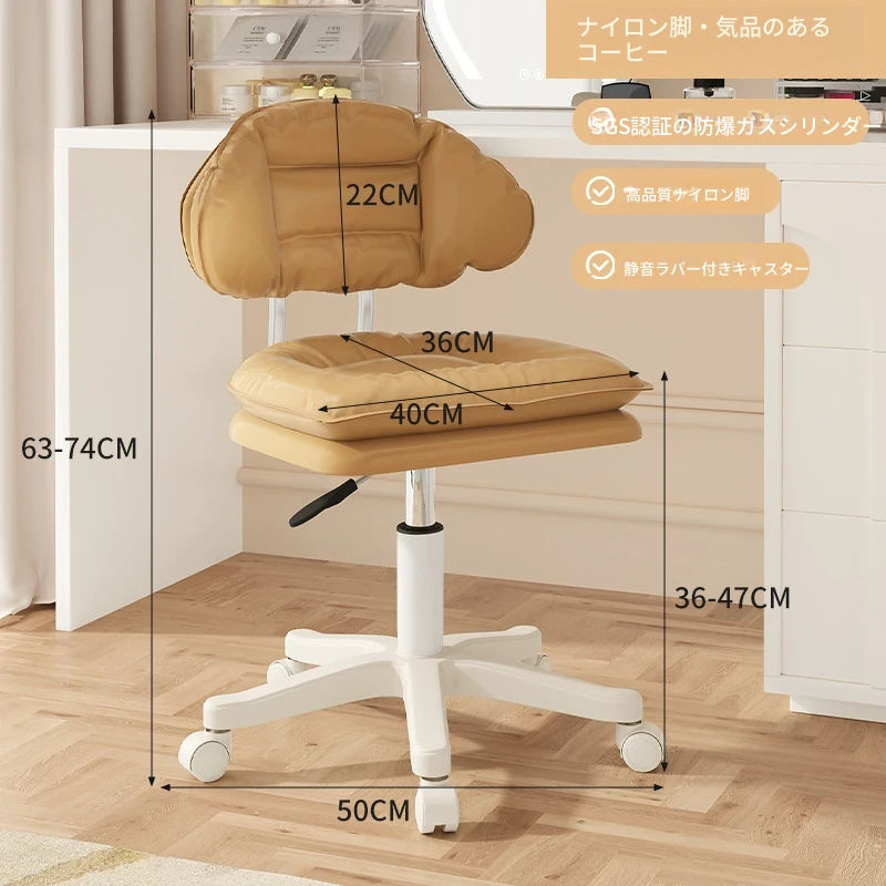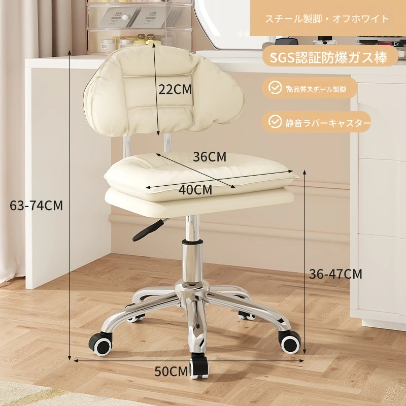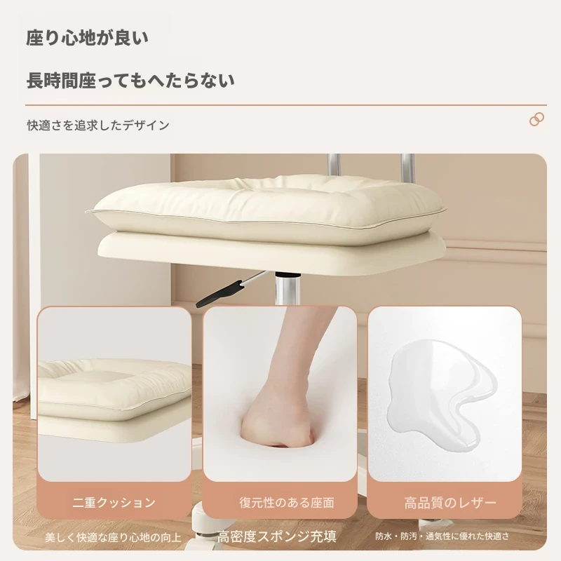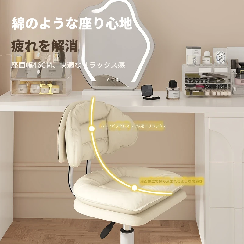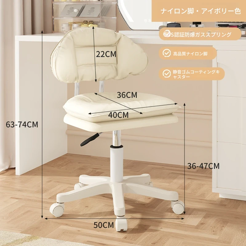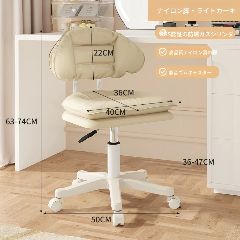 インフルエンサーおすすめ!自宅用メイクアップチェアー 高級感溢れるクリーム風デザイン モダンミニマリズム 小スペースに最適な背もたれ付きの贅沢な一脚。