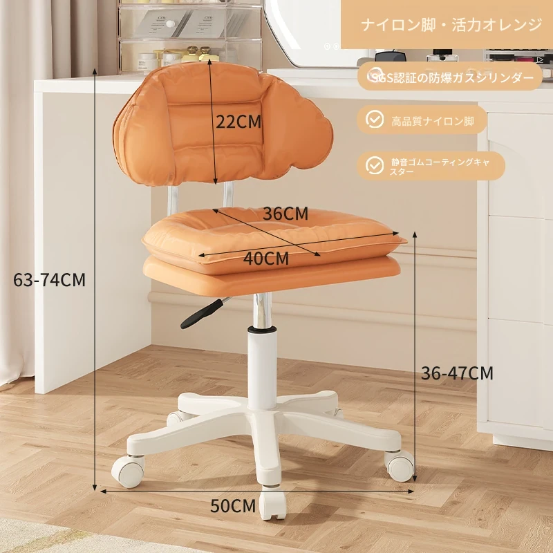【活力オレンジ雲】ミツメ静音キャスター&回転防爆ガスシリンダー/0b4