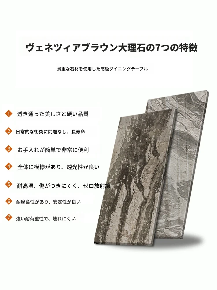1.8mヴェネチアンブラウン天然大理石ダイニングテーブル(偽りの場合は十倍返し)
