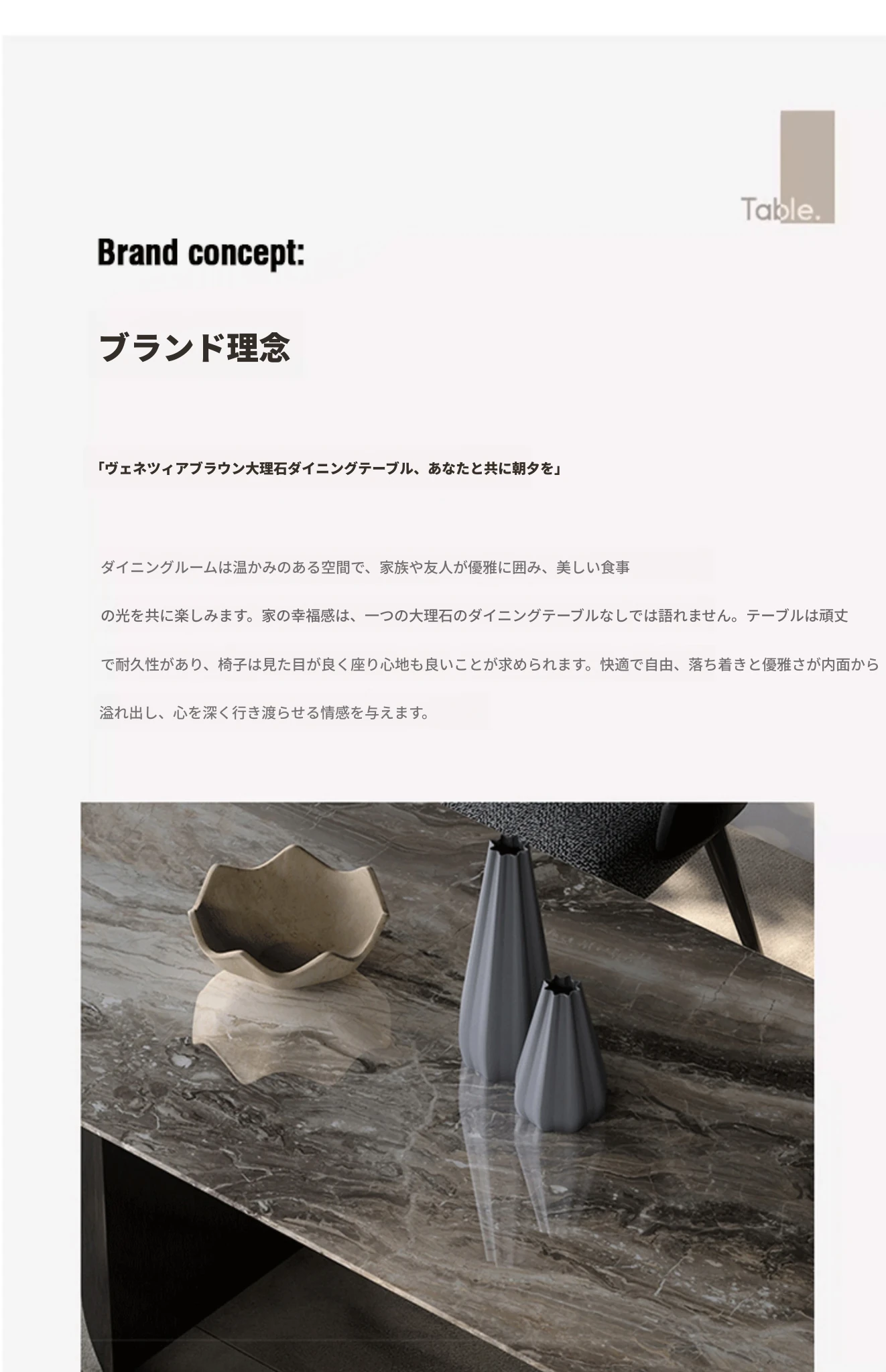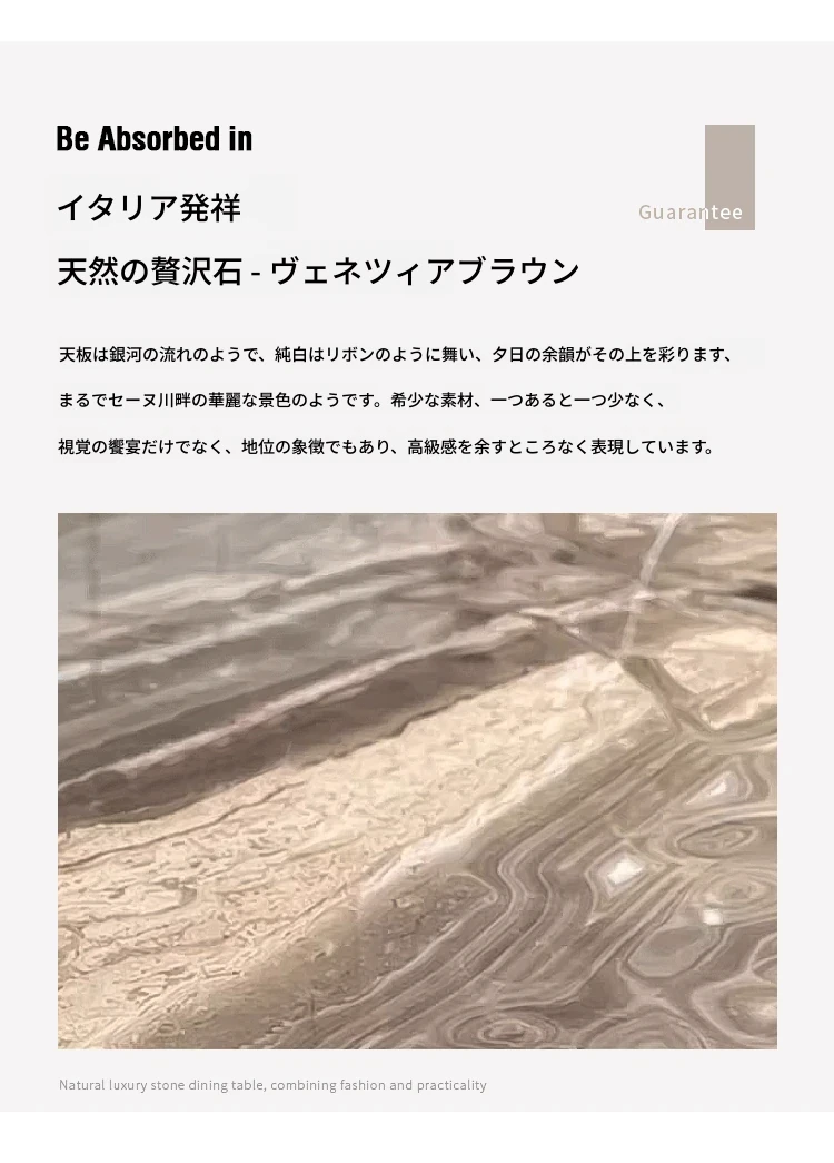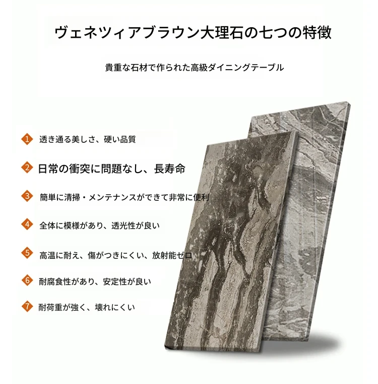2.0m+4椅子ヴェネチアンブラウン天然大理石ダイニングテーブル(偽りの場合は十倍返し)