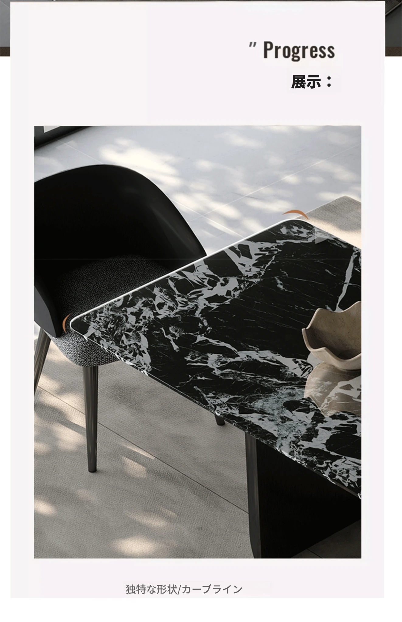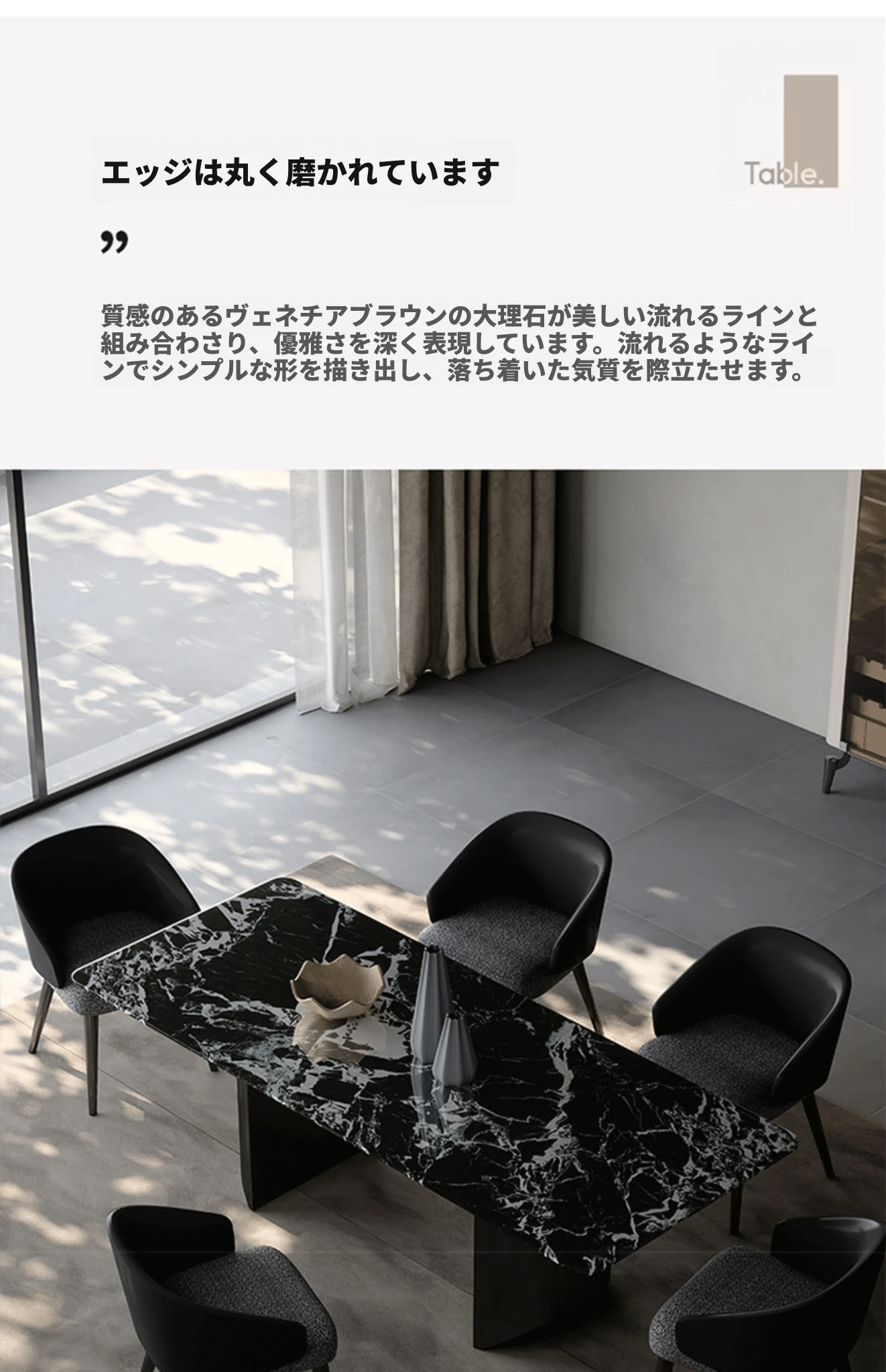 2.2m+6椅子ヴェネチアンブラウン天然大理石ダイニングテーブル(偽りの場合は十倍返し)