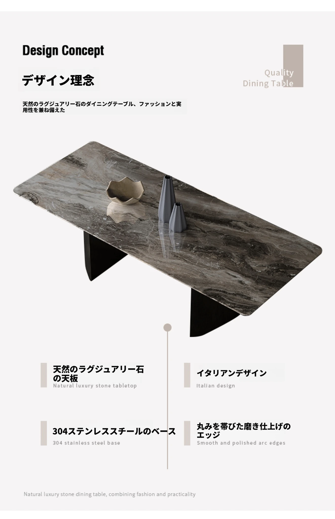 2.2mヴェネチアンブラウン天然大理石ダイニングテーブル(偽りの場合は十倍返し)