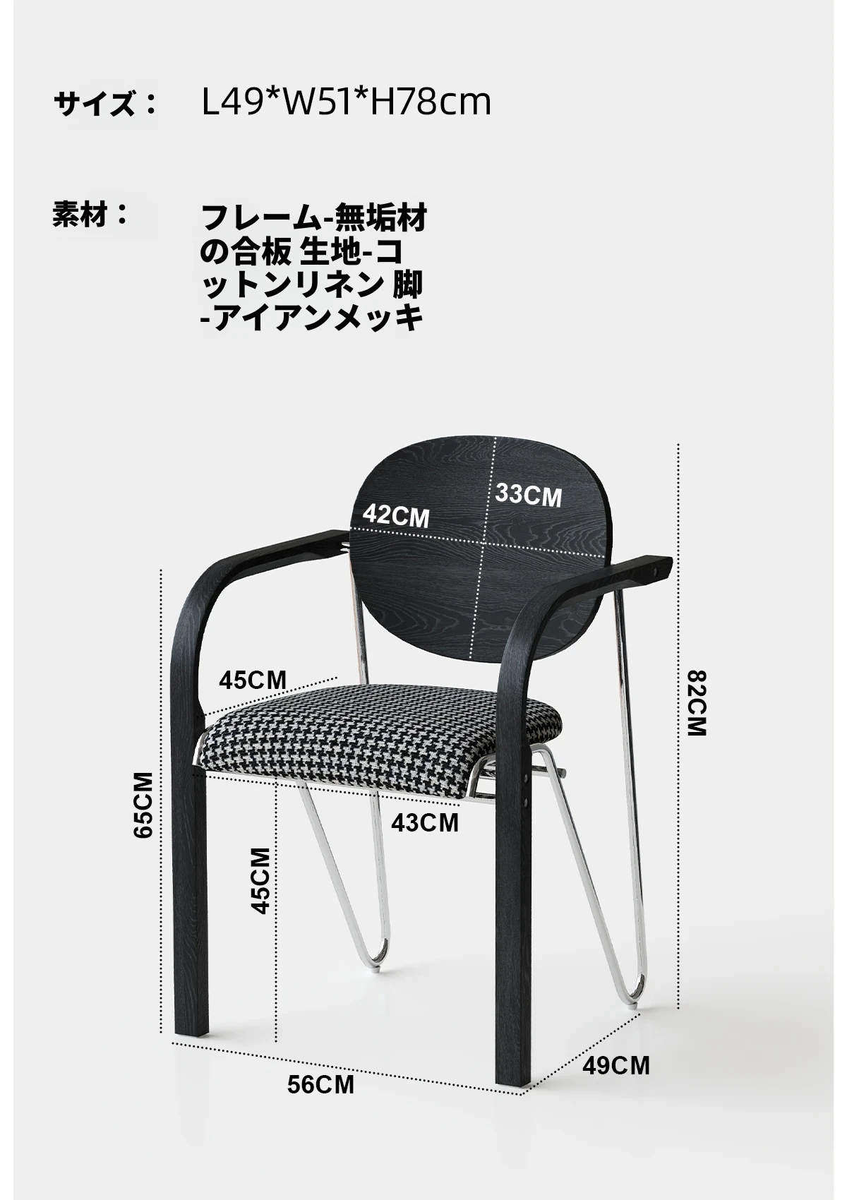 左下パットダイニングチェア|北欧イタリアン・ミニマリストデザイン|家庭用・背もたれ付きソフトパッド|デザイナー製・アイアン製レトロ工業風【快適さとスタイルを両立】