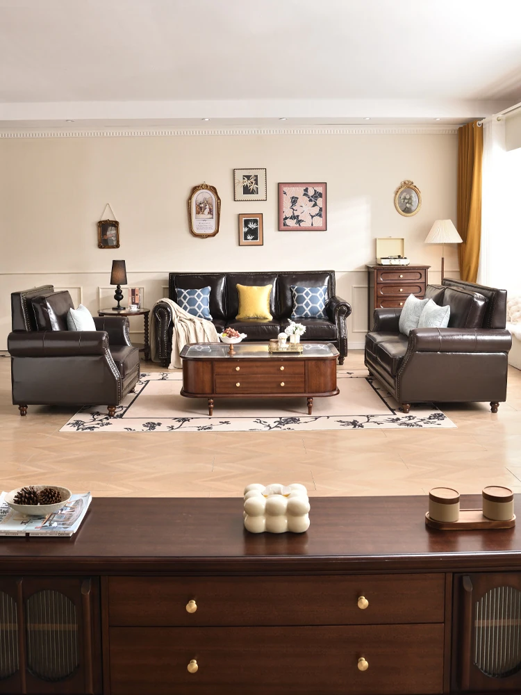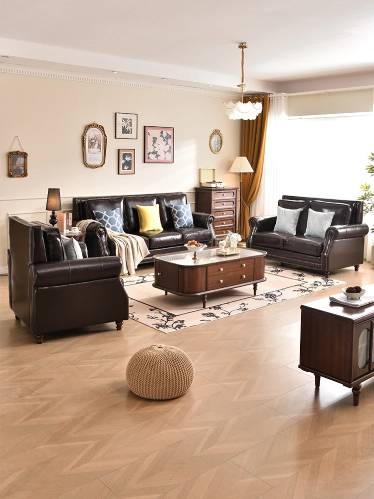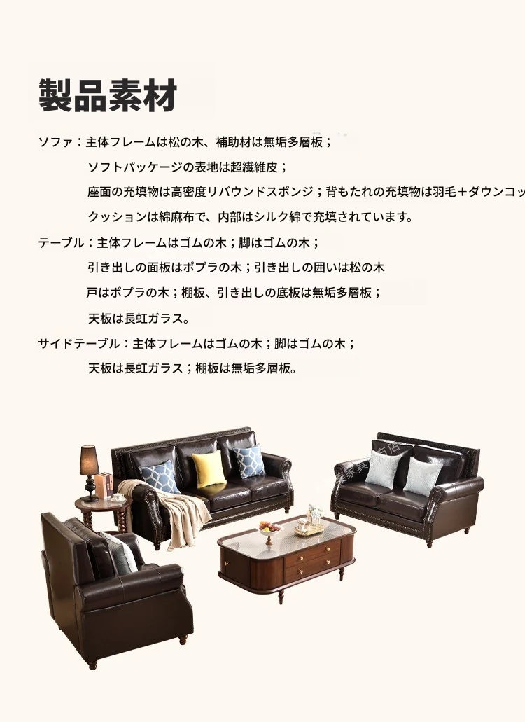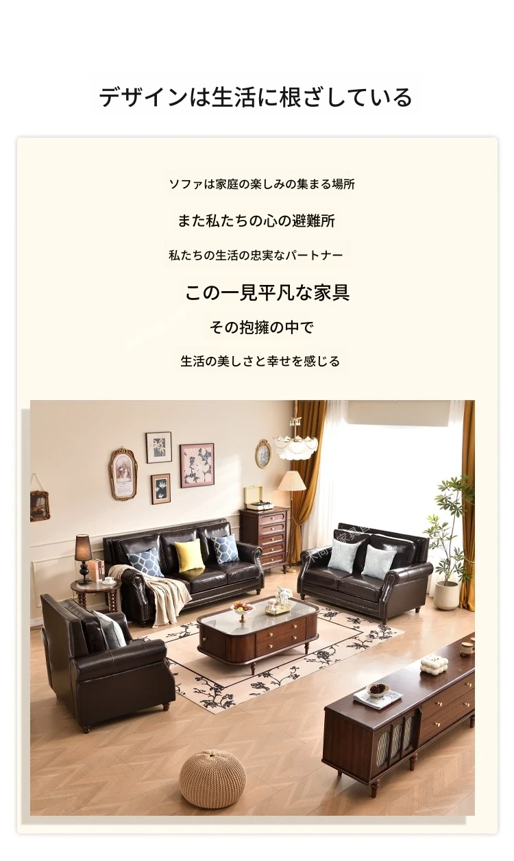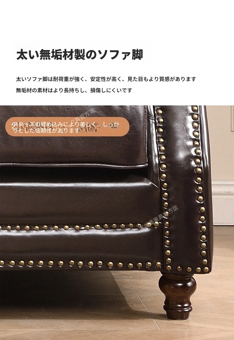 ヴィンテージ風レザーソファ|ラグジュアリーな高級感漂うアメリカンレトロデザイン|リビングルームに最適な一人掛け・二人掛け・三人掛けソファ|実木使用で耐久性抜群!あなたの空間を格上げします。