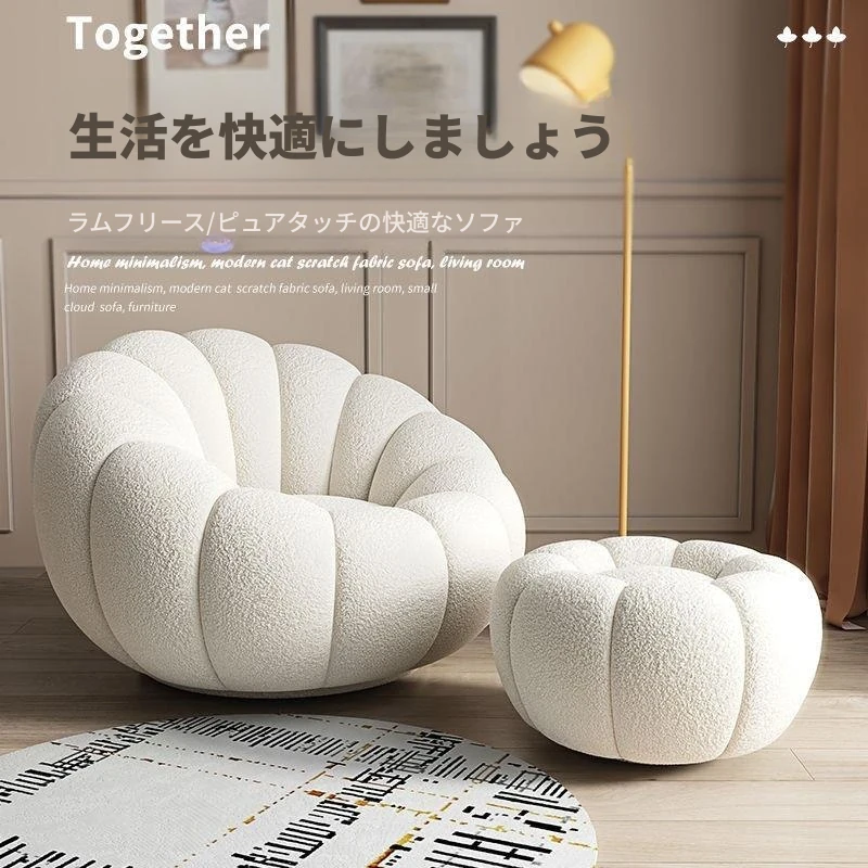 真っ白の単体ソファ(ラムスキン柔らかい)肌に優しい