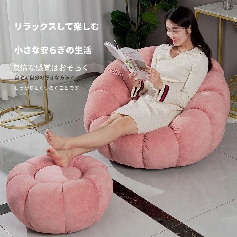 鮮やかなピンクのソファ+フットレスト(ラムスキン柔らかい)肌に優しい