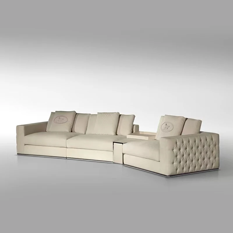 フェンディ軽奢ヴィラ向け大サイズ本革ソファー - スエード調のファブリックとラッチデザインで、洗練されたスタイルと快適な座り心地を実現。モデルルームにもぴったりな高級感あふれる家具です。