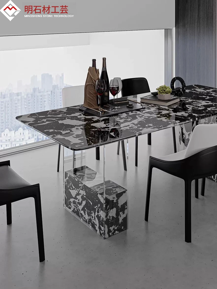 2023年新作!デザイン全案で実現したモダンラグジュアリー長方形豪華石材ダイニングテーブル。別荘や大邸宅にぴったりの高級感溢れる一品。あなたの空間を格上げする特別なテーブルをお見逃しなく!