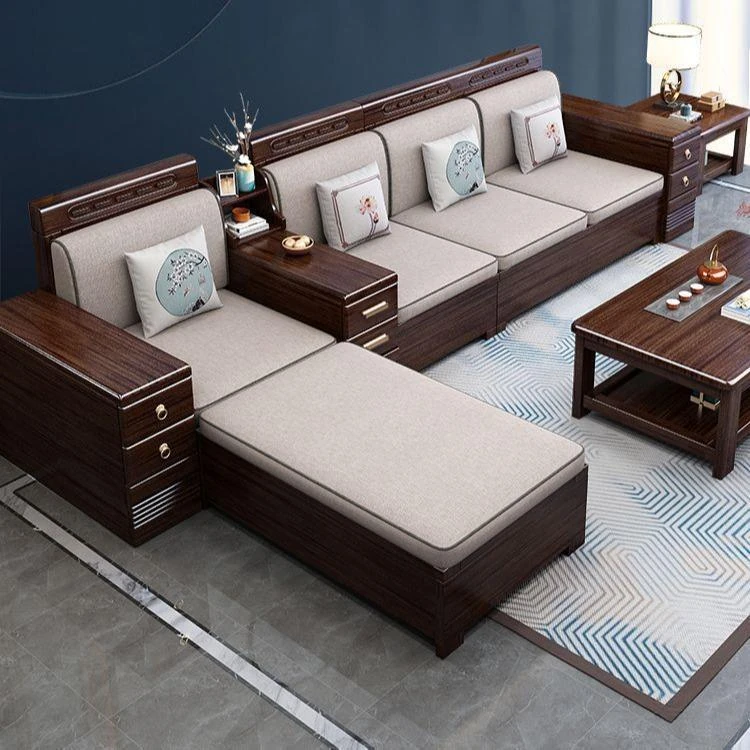 檬榆紫金檀の無垢材ソファー - 冬夏兼用の収納付き、リビングにぴったりなコンパクトなティーテーブルセット。小さなお部屋でもおしゃれに収納力アップ!