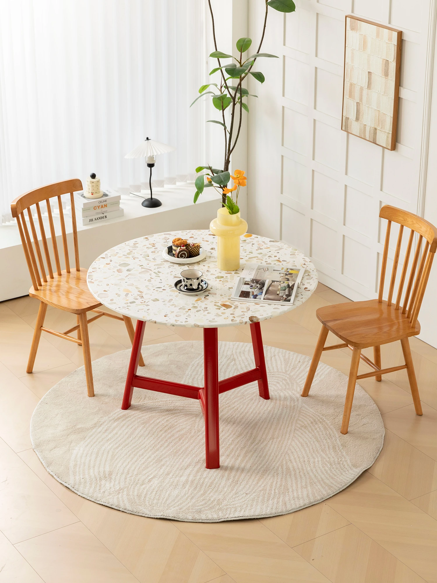 小紅書風フレンチクリームミルク仕上げの水磨石大理石ラウンドテーブル - ドーパミンカラーの小型家庭用ダイニングテーブル、狭いスペースにもぴったり!